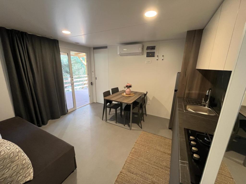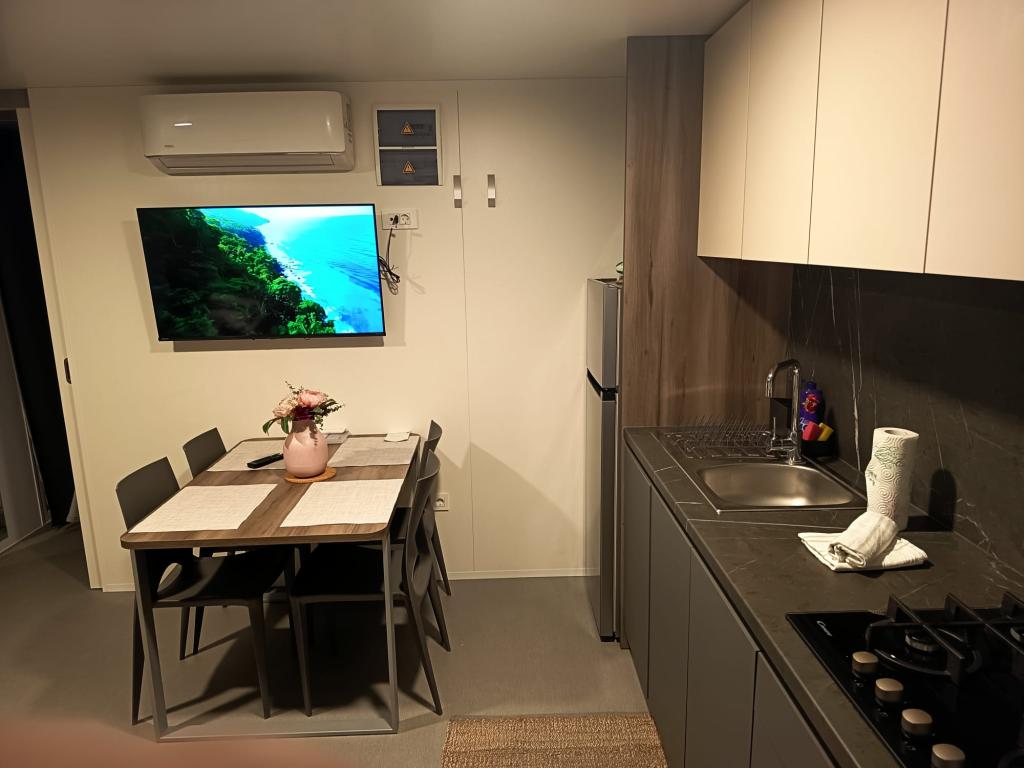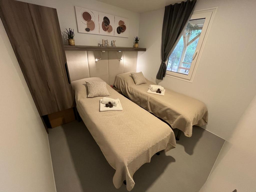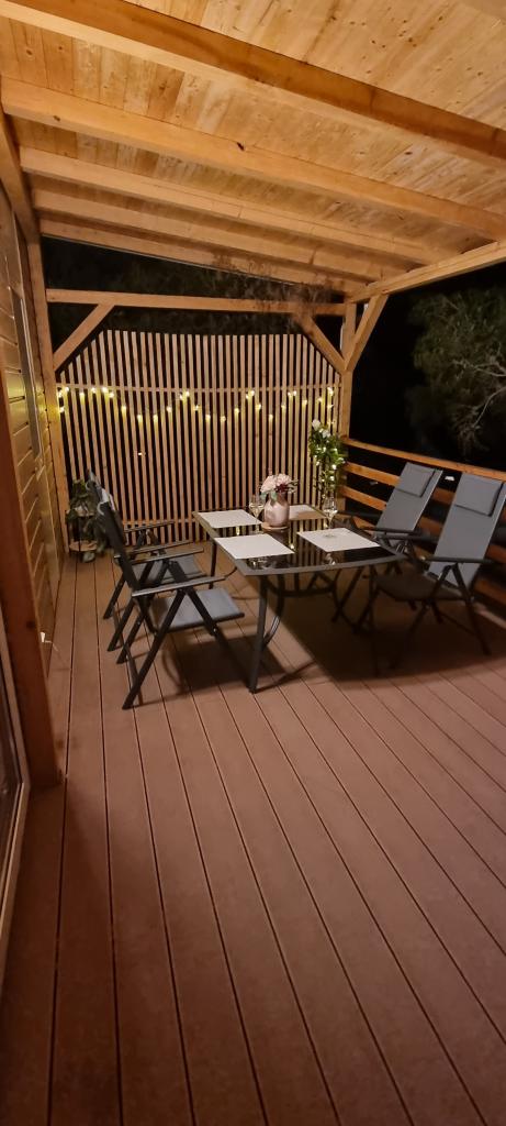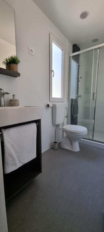 Rulotă de 35m2 cu o terasă de 24m2, nouă, complet utilată, situată în tabăra Oaza Mira. Tabăra este clasificată la 4****. În cadrul taberei există o instalație sanitară cu posibilitatea de a folosi o mașină de spălat, terenuri de tenis, loc de joacă pentru copii, restaurant, cafenele, piscină. În apropierea taberei există și mai multe plaje cu steag albastru, un port de agrement și promenade. Distanța față de camping: - Pakoštane 4 km - Biograd na Moru - Lacul Vrana 3 km - Zadar 39 km - Parcul Național Krka 36 km - Šibenik 24 km - Vodice 20 km Casa oferă: - o cameră cu pat dublu 160x200 cm - o cameră cu două paturi de o persoană 90x200cm - un living cu canapea extensibilă pentru 2 persoane - 2 băi cu duș și toaletă - o bucătărie utilată pentru 6 persoane - frigider cu congelator - fierbător electric - plită vitroceramică cu 4 ochiuri pe gaz - mașină de spălat vase - Wi-Fi, Smart TV + Netflix - masă + 4 scaune - 2 șezlonguri, o masă și 6 scaune - 2 locuri de parcare în fața rulotei, - lenjerie de pat și prosoape