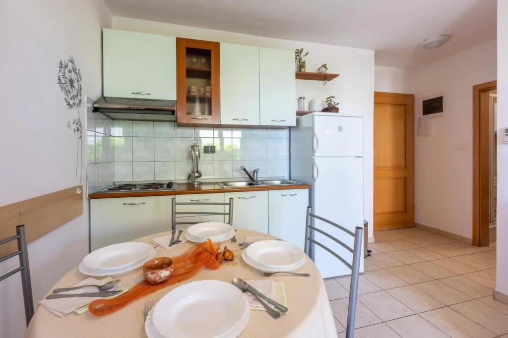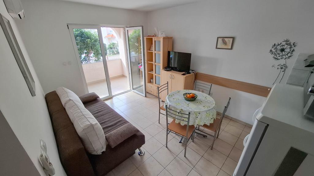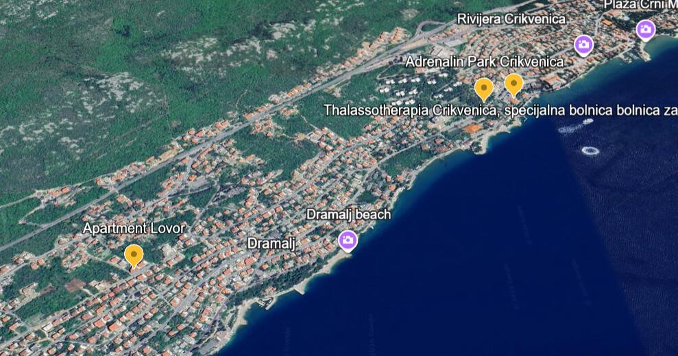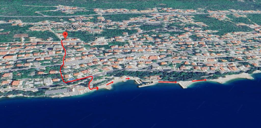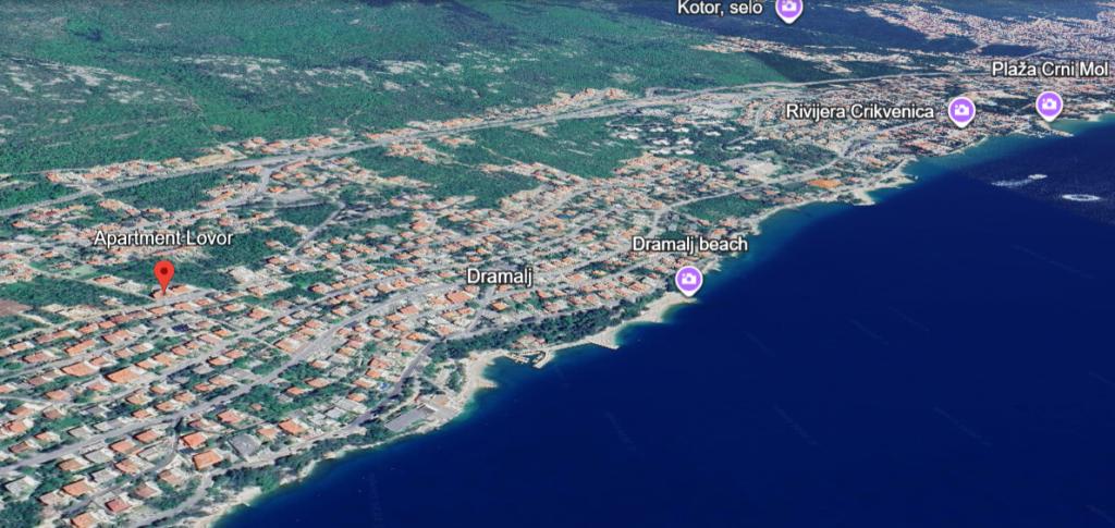 Apartament Lovor (31m²), parterul unei clădiri rezidențiale, zonă liniștită în Dramalj. 450m de mare, aproape de Thalassotherapia, Adrenaline Park și trasee. Ideal pentru 2-3 adulți sau o familie. Include dormitor (160x200), baie, terasă și bucătărie echipată (frigider, aragaz, microunde, fierbător, cafetieră, prăjitor pâine, veselă) cu living (TV, canapea 75x200/150x200). Aer condiționat, Wi-Fi gratuit și parcare privată în curte.