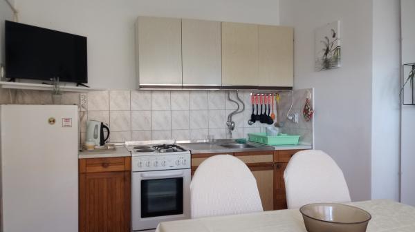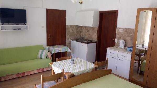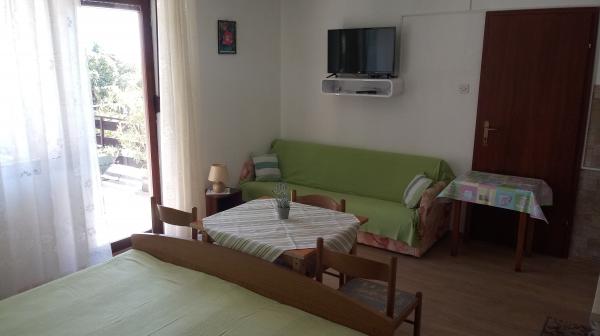 Apartamentul este situat în Dramalj, strada Milovan Muževiža 116., cu centrul din Crikvenica legat de autobuzul orașului, barca de oraș și un tren turistic atractiv. Casa are mai multe unități de cazare, care se află la etajul 1 al unei case de familie, iar restul sunt proprietari live. Apartamentele sunt departe de mare aproximativ 5 minute. mergeți la magazin alimentar și la fel de mult la plajă. Ideal pentru familiile mici. Apartamentul este format dintr-un dormitor cu pat dublu și pat suplimentar, bucătărie complet utilată, baie și hol. Intrarea în apartament este din partea din spate a casei și vine direct la bucătărie, de unde oferă o priveliște frumoasă a mării și a insulei Krk, precum și un balcon în fața dormitorului.