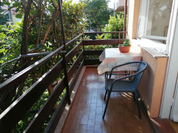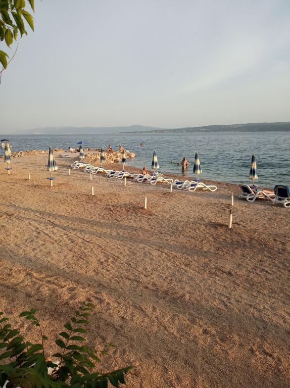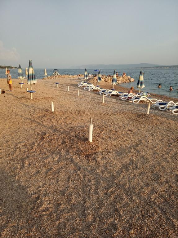 Apartamentele sunt situate în orașul liniștit Dramalj, lângă Crikvenica, la adresa Milovan Muževića 116, la cinci minute de mers pe scări de plajă. Dramalj este conectat la centrul orașului Crikvenica cu autobuzul urban și trenul. Casa are mai multe unitati de cazare, iar in ea locuiesc si proprietarii. Apartamentele sunt la 170 m de mare. Plajele sunt cu pietriș și beton. Sunt la 500 m de centrul spa Thalassotherapia. Sunt potrivite pentru familii mai mici. Sunt situate la primul etaj al casei familiei. Fiecare este compus dintr-un dormitor, baie cu dus si bucatarie. Sunt dotate cu internet gratuit, aer condiționat, televizor, bucătărie cu aragaz și vase, lenjerie de pat și prosoape. Apartamentul 1 are 30 m2: un dormitor cu un pat matrimonial si o canapea extensibila pentru 2 persoane, o bucatarie si o baie, si are balcon. Apartamentul 2 are 35 m2: un dormitor cu pat matrimonial si canapea pentru o persoana, iar in bucatarie este o canapea extensibila de 140 cm latime pentru 1-2 persoane, si are o terasa mare. Animalele de companie sunt acceptate la un cost suplimentar de 10 EUR pe noapte.