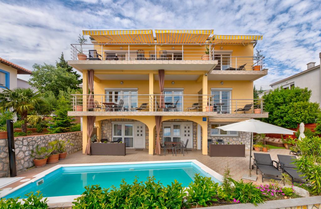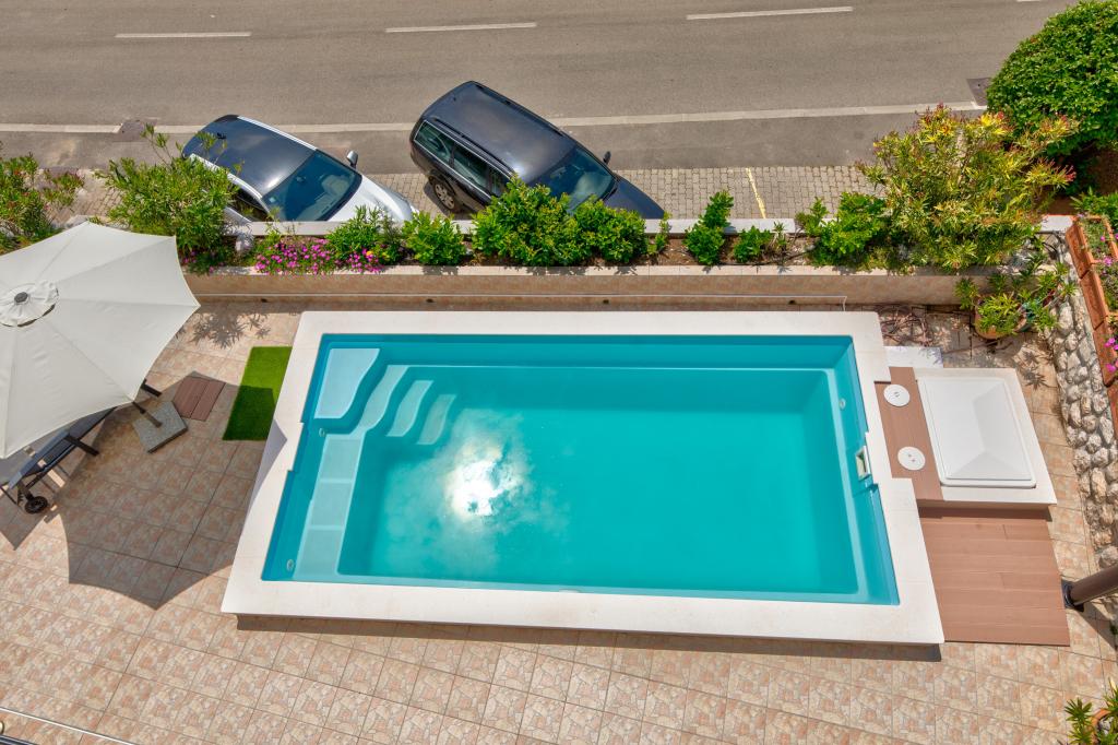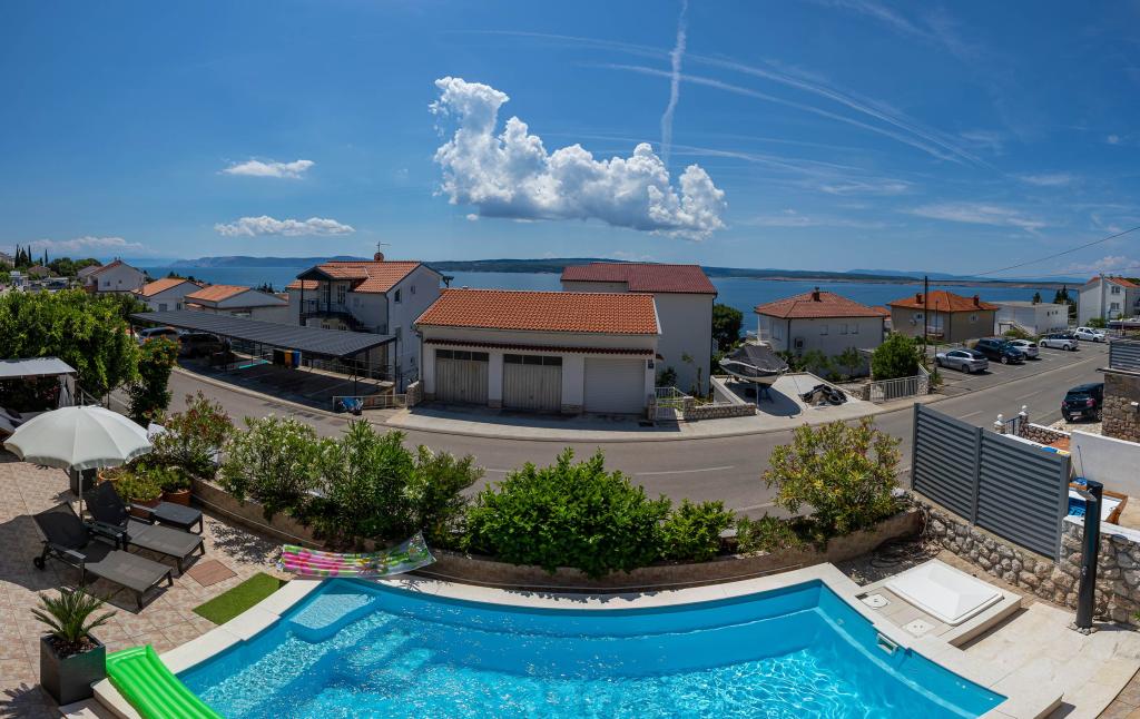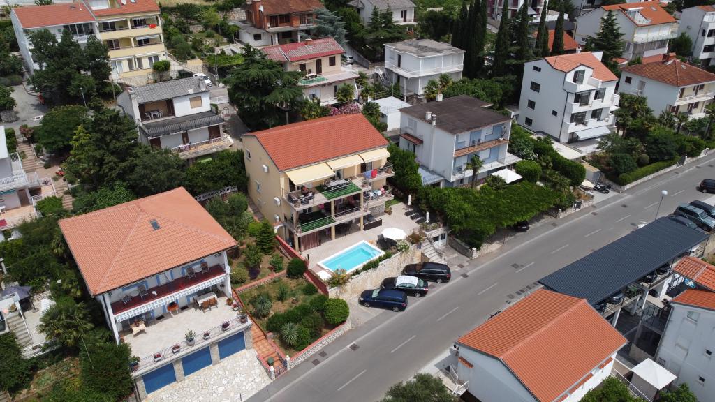 Casa cu apartamente moderne si bine echipate este situata in al doilea rand de la mare, langa un restaurant, o piata si o brutarie. Unitatea are o terasă spațioasă cu piscină, șezlonguri și grătar în aer liber. Există o parcare pentru oaspeți în fața casei. La parter se afla garsoniera A1 (ID:45200) si apartamentul A2 (ID:45382) cu doua dormitoare, doua bai si un living spatios cu bucatarie. La etajul 1 se află apartamentele A4 (ID:45381), A5 (ID:45380) și A6 (ID:45235) cu vedere la mare, iar la ultimul etaj se află apartamentul penthouse A7 (ID:45234) care oferă un confort excepțional.