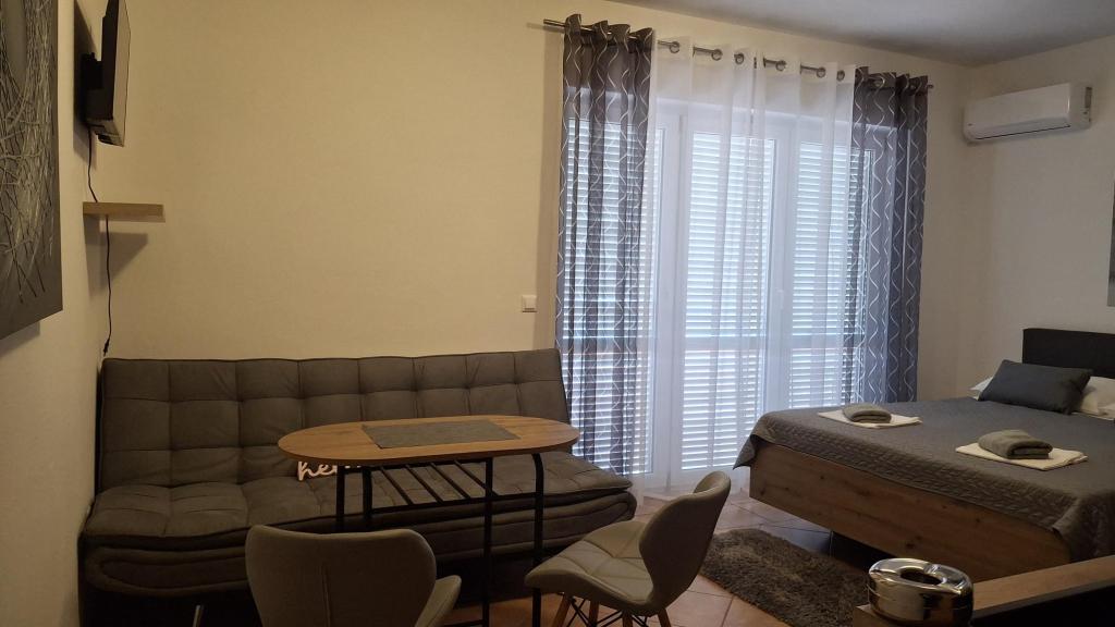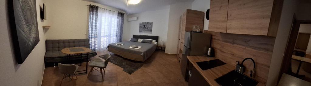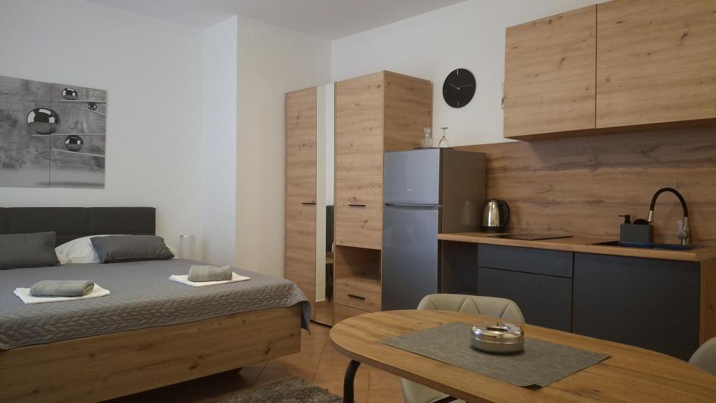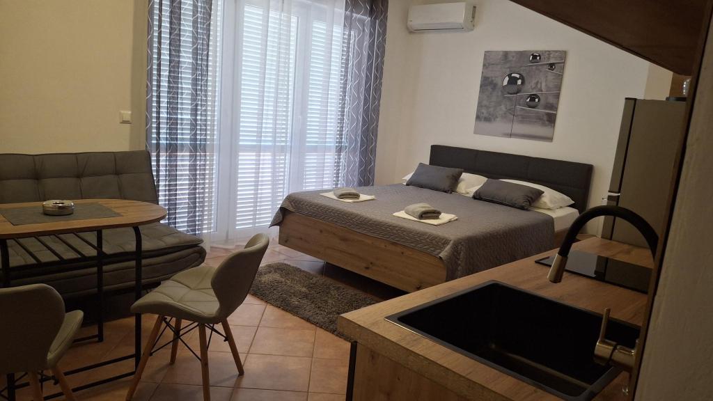 Pentru o pauză de la viața de zi cu zi și viața agitată, vă oferim garsoniere sau camere la alegere într-o clădire nouă de familie, cu vedere la mare. Cazarea ta este situată la 4-5 minute cu mașina de oraș, iar plaja la 3-4 minute. Apartamentele au posibilitatea de a folosi un gratar in aer liber, si sunt aproape de centrul comercial Duga Mall si Lidl. La noi ai tot timpul parcare securizata, care este cea mai mare problema a oricarei destinatii turistice. Posibilitatea de a folosi aparatul de aer condiționat cu o taxă suplimentară de 5 EUR pe zi. Vacanța dumneavoastră plăcută în unitatea noastră este sarcina noastră cea mai mare.