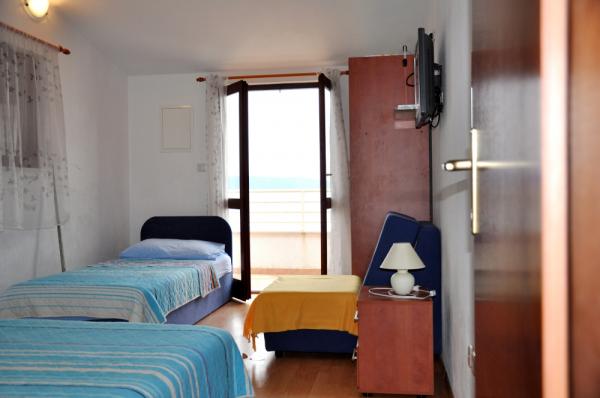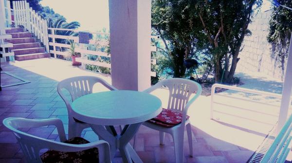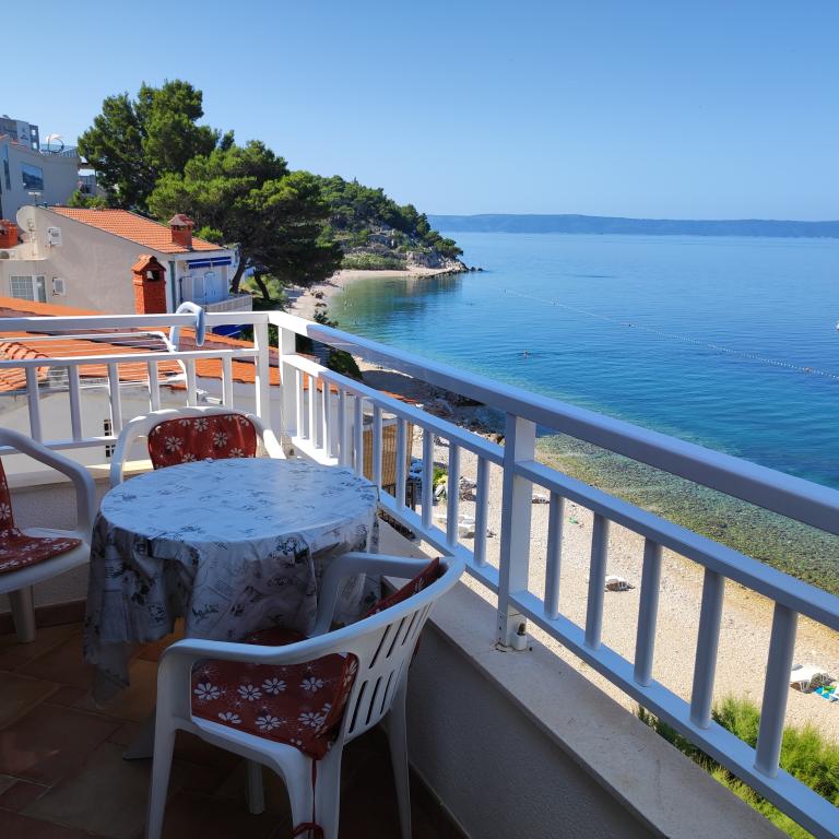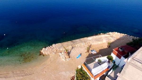 Casă cu patru apartamente, situată la 10 m de mare. APP1(2), APP2(2+2), APP3(2+1), APP4(3+1). Toate apartamentele sunt dotate cu: Aer conditionat, TV satelit, WI-FI, loc de parcare, vedere la mare. Chiar sub casa se afla o plaja la care ai acces direct cu scari.