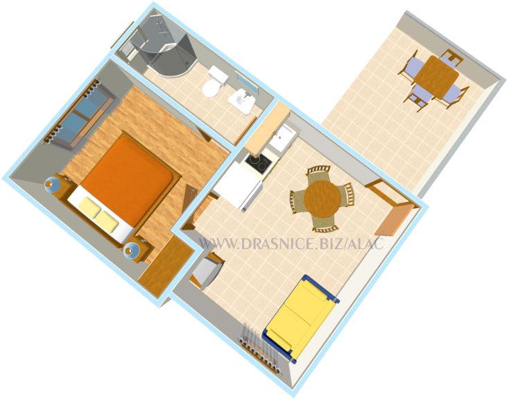 Apartments ALAC este o facilitate turistic modern, care vă oferă un sentiment de acasă cu apartamente moderne. Acestea sunt situate în Drasnice, aproape Makarska, si sunt o oportunitate ideală de a petrece o vacanta. Facilitatea este situat la 2 m de plajele lungi și pietriș, în timp ce apartamentele sunt dotate cu internet, aer conditionat, TV, bucatarie moderna. Bijuterie Drasnice Adriatică caracterizat de oameni prietenoși și o oază de liniște.