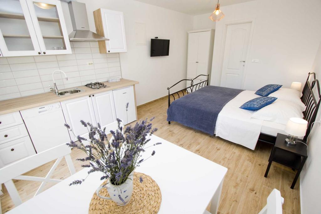 Apartamentele Rustica sunt situate la 20 de metri de mare într-un iaz tradițional dalmatic din micul oraș Drasnice. Oferă cazare pentru 11 persoane, în trei apartamente separate și este posibilă închirierea întregii case. Acestea conțin 3 unități de cazare - două apartamente cu vedere la mare și un studio. Fiecare dintre apartamente are o terasă și există o terasă în partea de sus a casei, cu o vedere frumoasă la mare și la insulele din apropiere. Fiecare apartament are o intrare separată, este dotat cu aer condiționat, echipat cu o mașină de spălat vase, precum și ustensile pentru utilizare și un TV cu ecran plat cu canale prin satelit. Apartamentele Rustica sunt situate în apropierea mai multor plaje, la 50 de metri de plaja Čevajele și la 200 de metri de plaja Soline și la 200 de metri de cel mai apropiat supermarket, restaurant și cafenea. Apartamentele Rustica vă vor permite o vacanță liniștită și liniștită în unitățile lor decorate în conformitate cu mediul în care sunt amplasate.