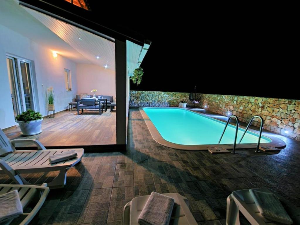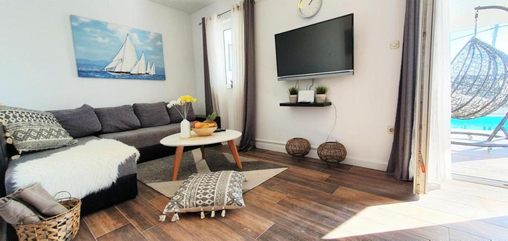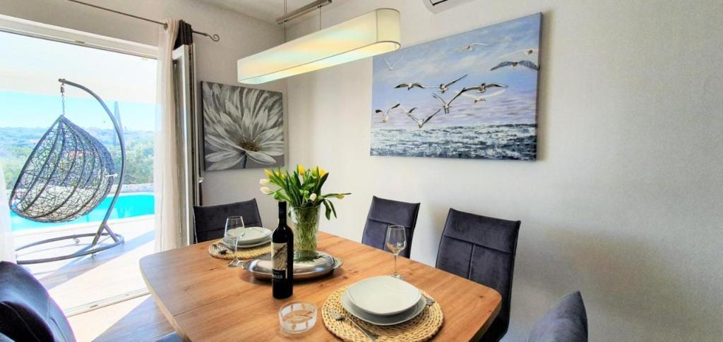 Casa de vacanță Ana Laguna este situată pe insula Drvenik Mali, lângă Trogir, și oferă unități de cazare cu aer condiționat și piscină privată. Este situat la 200 de metri de plaja Vela Rina. Casa are 3 dormitoare, 2 băi, lenjerie de pat, prosoape, un TV cu ecran plat cu canale prin cablu, o sufragerie, o bucătărie complet utilată și un balcon cu vedere la piscină. Oaspeții își pot lua masa în zona de luat masa în aer liber, cu vedere la grădină.