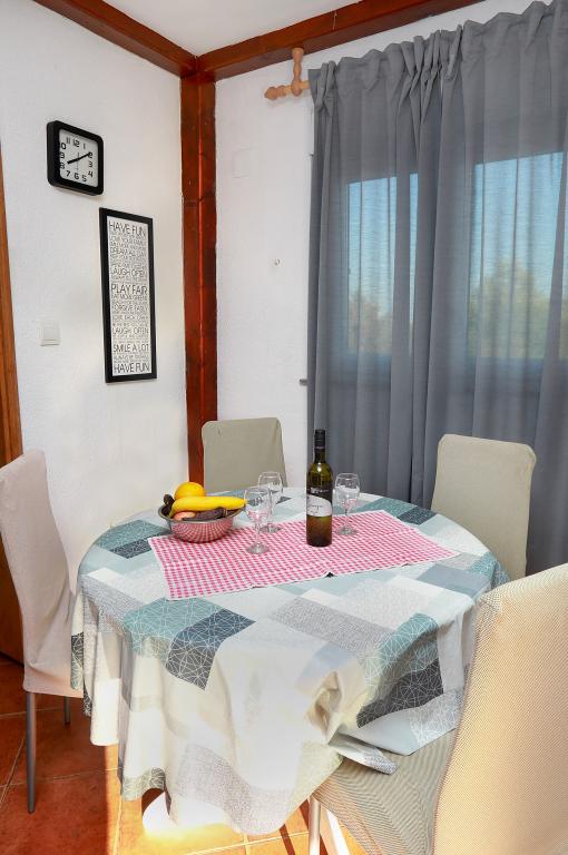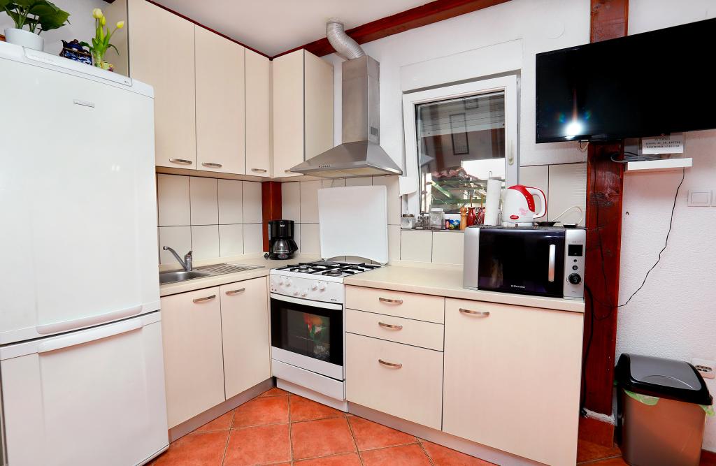 Despre acest loc: Casa de vacanță Veronika este locul perfect pentru o evadare în stil Robinson pe insula Drvenik Mali din Dalmația centrală, aproape de orașul Trogir, protejat de UNESCO. Insula are una dintre cele mai frumoase plaje cu nisip, Vela Rina, în stilul Lagunei Albastre. Ne aflăm într-o natură neatinsă, deasupra golfului plajei de nisip și a Capului Kalafate, astfel încât proprietatea noastră are o vedere spectaculoasă asupra mării deschise; divin în zori și apus. Spațiu: Proprietatea noastră este o casă cu un etaj, complet utilată și dotată cu aer condiționat, cu o curte în care o terasă însorită cu o vedere frumoasă la mare. Alte note: În cadrul proprietății există două case separate, Veronika și Šimun, care pot fi închiriate individual sau împreună, dar oaspeții au intimitate datorită locației fiecărei case. Ambele unități împart o parcare comună împrejmuită și o tavernă spațioasă - grătar.