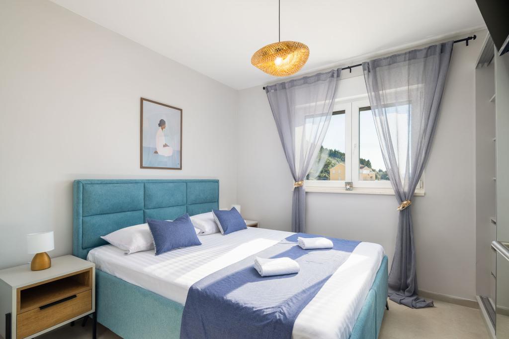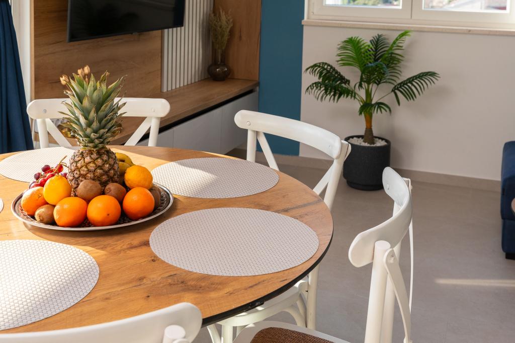 Apartamentul Zina este situat la doar 150 de metri de plaja din Drvenik și oferă cazare modernă și confortabilă, cu o vedere frumoasă la mare. Este ideal pentru familii sau grupuri mici care caută o vacanță relaxantă la mare. Apartamentul are două dormitoare, o baie cu toaletă suplimentară și un living cu o canapea extensibilă. Oaspeții se pot bucura de un balcon spațios cu vedere la mare, precum și de facilități precum o mașină de spălat și un loc de parcare privat în garaj. Personalul nostru vă stă la dispoziție pe tot parcursul sejurului pentru a vă face vacanța plăcută și lipsită de griji.