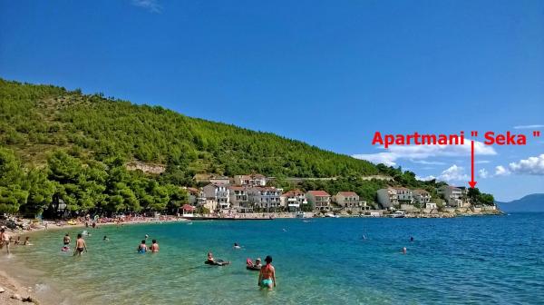 Apartamentele sunt situate într-o zonă liniștită din Drvenik. Situat pe primul rând la mare. Parcarea este situată în fața clădirii. Sub clădire se află un mal beton și stâncos, iar o plajă cu pietriș este la 50 m. La 100 m se afla restaurante, cafenele, brutarii, magazine, casa de schimb valutar.
