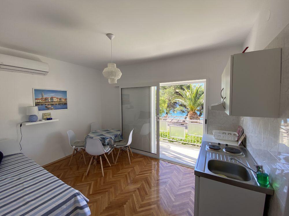 Bine ați venit la apartamentele noastre Blue Adriatic situate pe plajă! Apartamente recent renovate în centrul orașului Drvenik, primul rând de plajă și mare, cu balcoane care oferă vederi frumoase la mare, Biokovo, promenadă, restaurante. Toate apartamentele noastre au bucătărie utilată, baie, aer condiționat, TV, WiFi și parcare securizată în curte. Tot ce aveți nevoie pentru un sejur confortabil este aproape: magazine, restaurante, oficiul poștal, birou de schimb valutar, bancomate ... și suntem aici pentru a vă ajuta să vă simțiți confortabil și relaxat. Animalele de companie mici sunt, de asemenea, binevenite (trebuie să fie listate în anchetă). Pe lângă frumoasa plajă principală situată la câțiva metri de casă, Drvenik oferă băi de soare și înot pe stânci sub o pădure de pini la care se poate ajunge pe o promenadă, o plajă cu câini, trasee de drumeții și ciclism care duc la Biokovo, vechiul sat și alte obiective turistice, feribot către insula Hvar, precum și atmosfera caldă a unui mic oraș dalmațian.