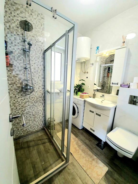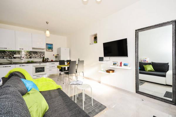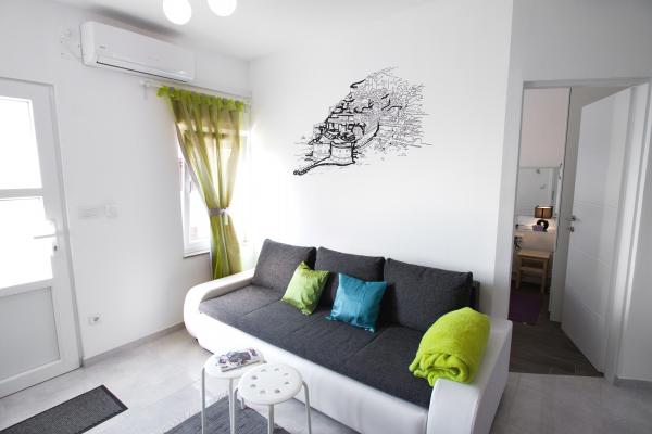 Bine ați venit în noul apartament cu o cameră, luxos, orientat spre sud și însorit, cu o terasă mare, complet utilată, la doar 10-15 minute de mers pe jos de orașul vechi! Apartamentul dispune de tot ce ai nevoie pentru o ședere confortabilă și plăcută chiar și pentru o perioadă mai lungă (cuptor, cuptor cu microunde, ceainic, aparat de cafea, frigider mare, congelator, plită, vase, mașină de spălat vase, mașină de spălat, uscător de păr, fier de călcat, masă pentru călcat, TV, wifi, aer condiționat...). Oaspeții au intrare separată și liniște. Este ideal pentru două persoane deoarece are un dormitor cu un pat king-size cu o saltea anatomică înaltă, dar poate găzdui două persoane suplimentare deoarece în living există o canapea care se rabatează într-un pat confortabil de 160x200. Locație excelentă, liniștită, sigură și la aproximativ 10 minute de oraș, și nu aveți nevoie de mașină pentru a ajunge în orașul vechi, dar pentru cei cărora nu le place să meargă pe jos există o stație de autobuz la aproximativ 100 de metri de apartamentul, iar autobuzele 3 și 3a merg direct la Pile, la stația de autobuz și la debarcaderul principal al portului (pentru excursii pe insule).