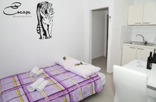 Apartamente curate, mobilate recent, într-o locație minunată și liniștită. Apropierea de plajă, restaurante, bănci, autobuz ... proprietar drăguț care vă va arăta totul, vă va explica și aranja transportul de la aeroport, la aeroport ... vă recomandăm ... ne vom întoarce cu plăcere