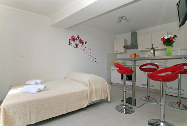 Apartamentul este nou, foarte curat și foarte modern si are totul pentru o vacanță perfectă. Proprietarul ne-a salutat călduros și ne-a arătat un apartament și din jurul zonei. Apartamentul este situat într-o poziție excelentă, astfel încât să imediat pe stradă poate fi găsit în centrul orașului Lapad, totul este -beach aproape, baruri, restaurante, autobuz, magazine, etc. proprietarul a recomandat să ne unde să meargă și ce să caute la și au fost întotdeauna disponibile . Apartament excelente și proprietar foarte bun, cu siguranță vom reveni anul viitor.