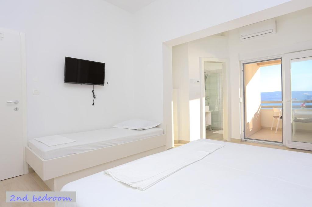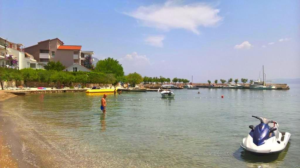 Pozitiv: Locație excelentă, chiar pe plajă. Plajele din fața casei sunt grozave (pietriș, nisip). Negativ: La sosire, chiar la parcare, în loc de o băutură de bun venit, doamna ne-a cerut să plătim apartamentul, fără să fi văzut încă apartamentul. Când am cerut telecomanda televizorului, doamna a spus că televizorul nu merge. Pe toată durata șederii noastre în apartament, televizorul nu a fost reparat și nici nu a adus unul nou.