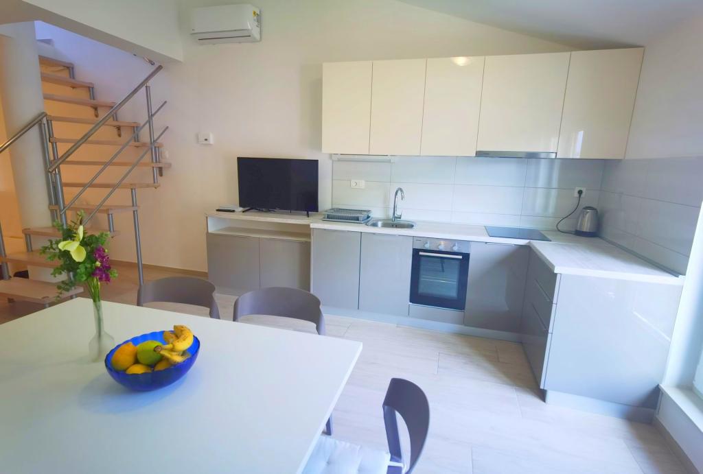 Locație foarte frumoasă și liniștită într-un mic port. Totuși, rețineți că trebuie să urcați câțiva pași până la apartament... parcarea este securizată cu poartă, deși este puțin îngustă cu un Viano. L-aș rezerva din nou.