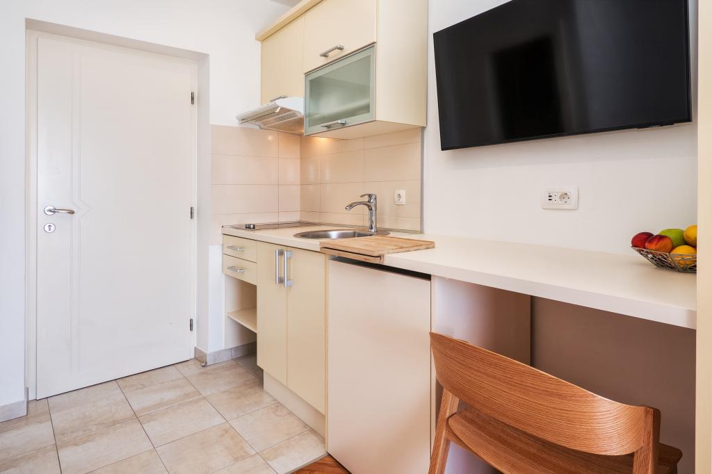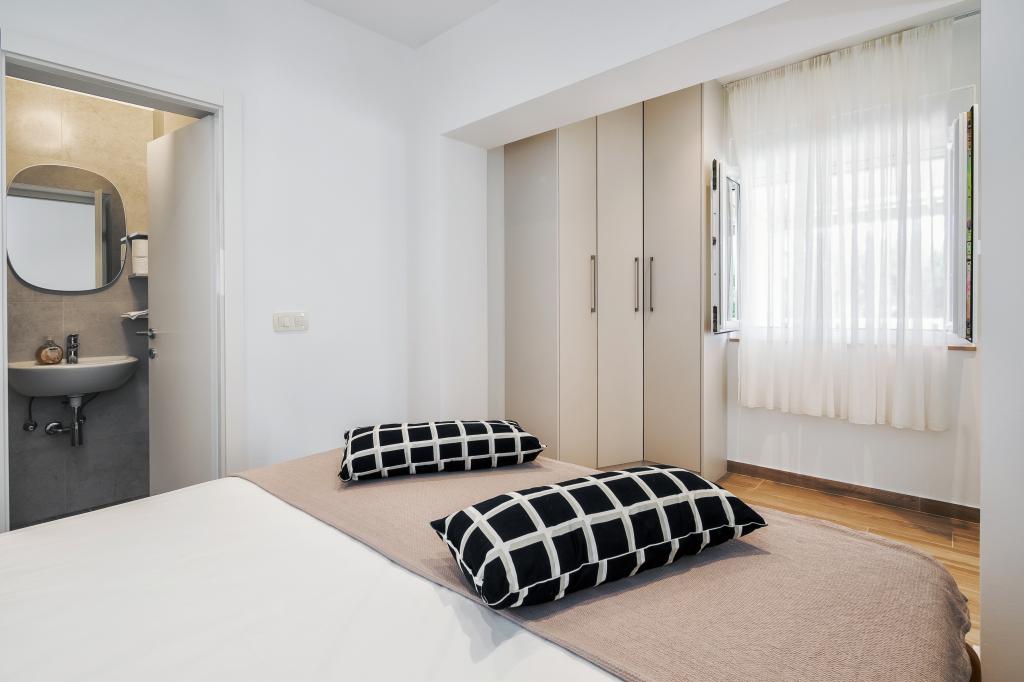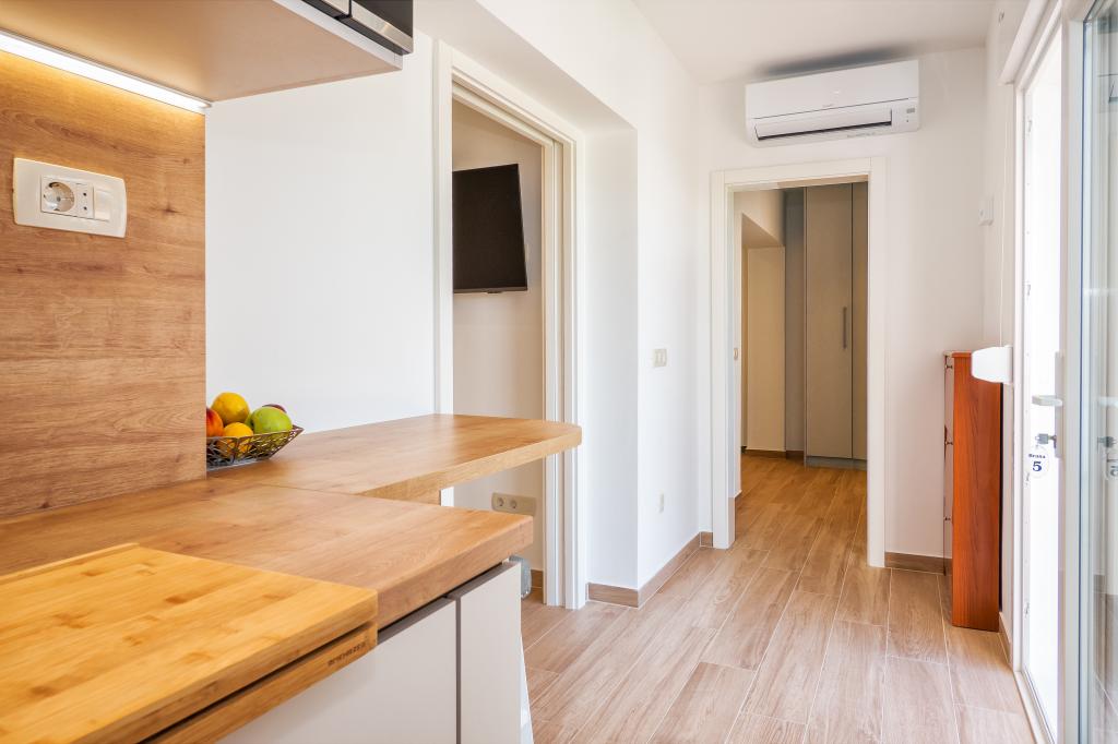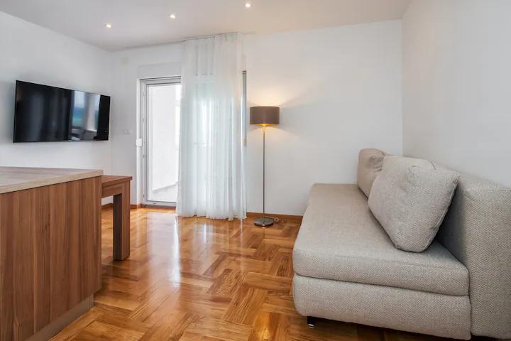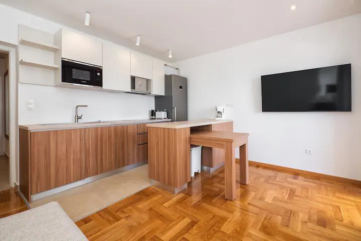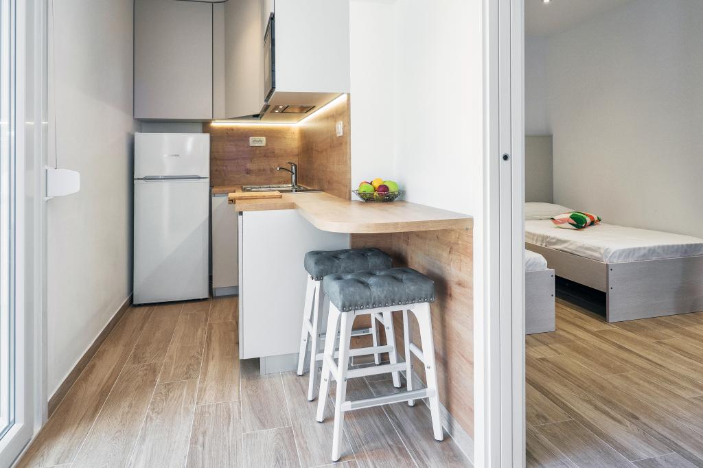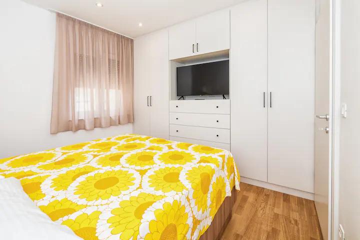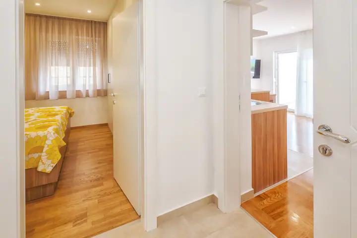 Vă recomand aceste apartamente. Este un loc frumos, cu munți chiar lângă coastă. Trasee de drumeții și vederi frumoase. În vecinătatea unor baruri și pizzerii excelente, plajă frumoasă cu nisip, pentru copii așa cum a fost făcută, cazare chiar pe plajă. Apartamente super curate. Ne-ar plăcea să revenim aici cândva.