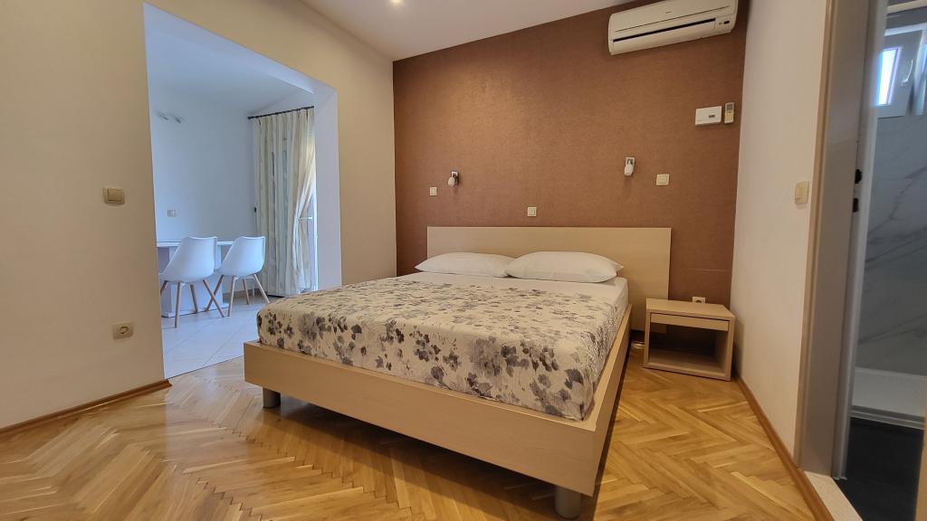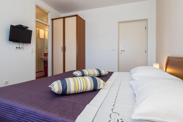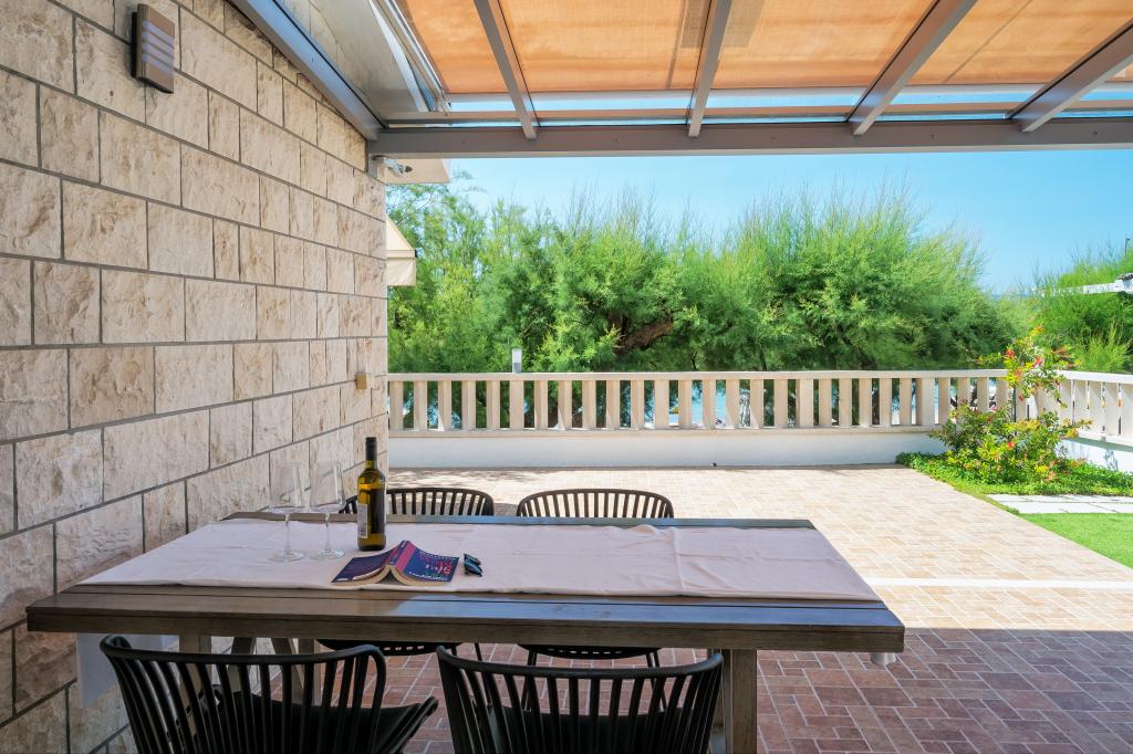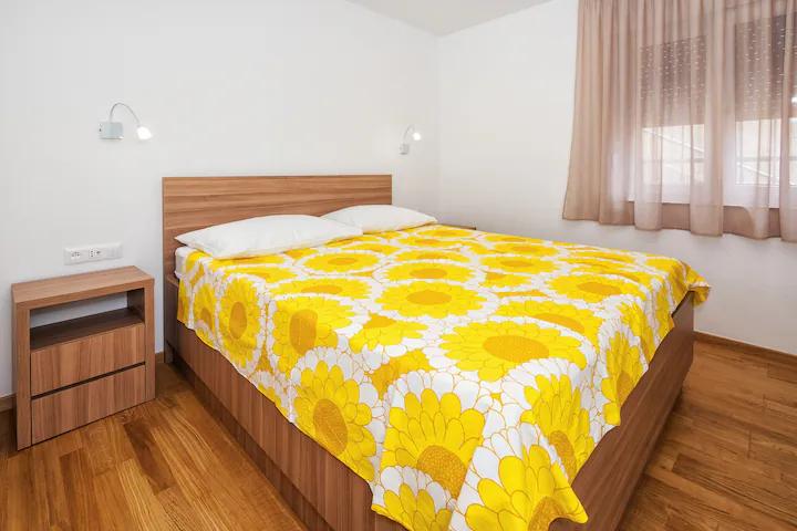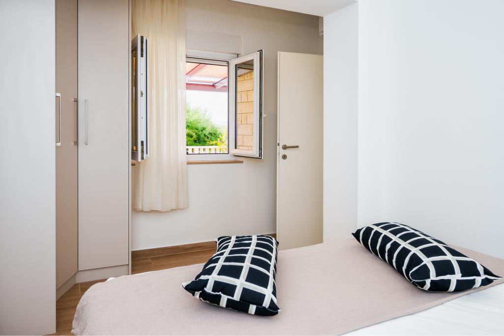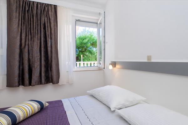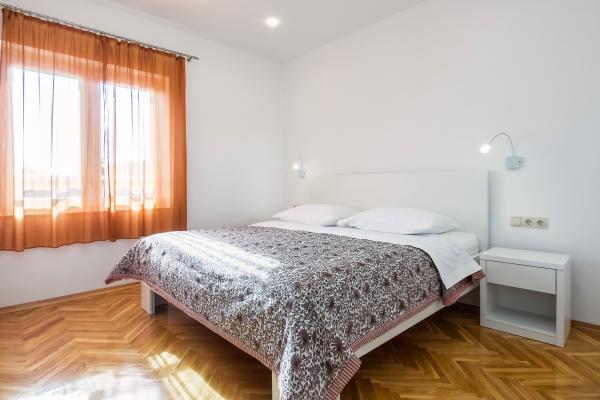 La Apartments Bruna va oferim cazare intr-o casa la doar cativa metri de mare si plaja de nisip. Este important de reținut că oferim 2 apartamente la parterul casei chiar pe plajă - ideale pentru persoanele în vârstă și familiile cu copii mici. În casă, la doar câțiva pași în spatele ei (desigur, sub drumul principal), la etajul doi (din al cărui balcon ai vedere deschisă spre mare și insule), îți oferim cazare în apartamente proaspăt renovate. Petrece-ti vacanta in apartamente complet echipate, situate chiar langa mare, la umbra copacilor de tamaris pe o frumoasa plaja de nisip!