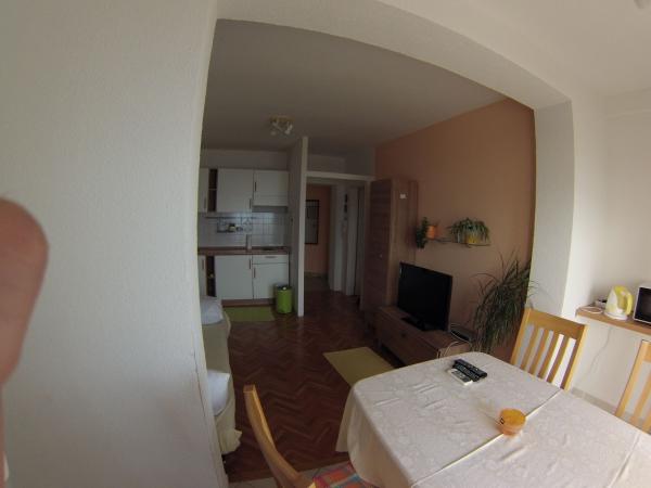 Am fost in septembrie 2021. Cazarea este excelenta, proprietarul a fost serviabil si placut, plaja este chiar peste drum, magazinele sunt aproape, puteti ajunge la Omis intr-o ora, asa ca ne-am plimbat in fiecare seara. Plaja este nisipoasă, iar peste casă există o trecere de pietoni, așa că este grozavă pentru cuplurile cu copii. Traficul nu se aude in camera asa ca am dormit bine. Ne-a plăcut foarte mult că bucătăria era pe balcon, ne-a fost practică și ne-am bucurat de vedere la mare la fiecare masă sau cafea. A fost foarte frumos pentru noi.
