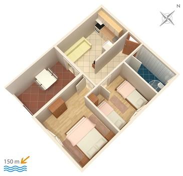 Casă într-un loc liniștit fără trafic. Suntem la 150 de metri de plajă. Plaja este nisipoasă, cu o țărm mare, ideală pentru copii. Centrul din Omis este la 15 minute de mers pe jos, iar Split este la 25 km.