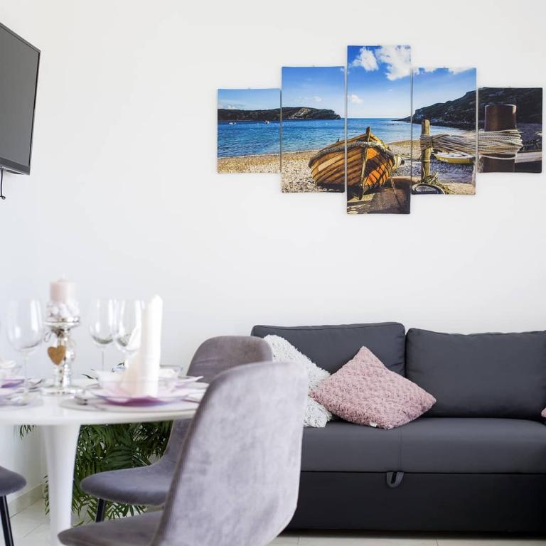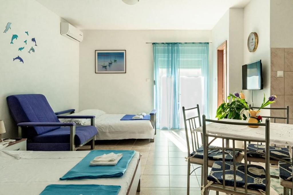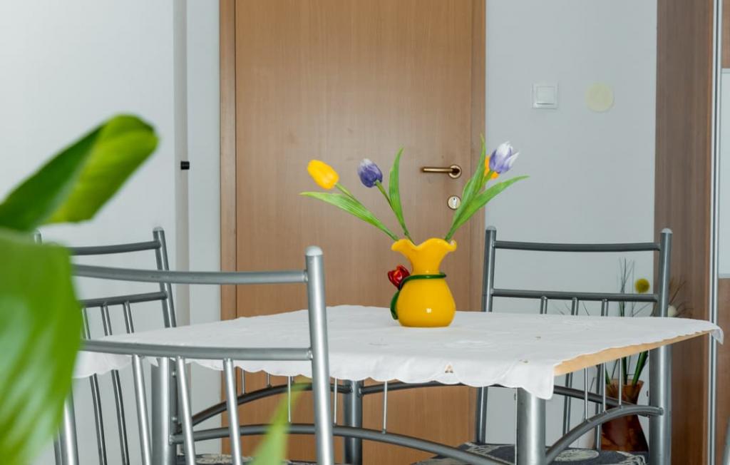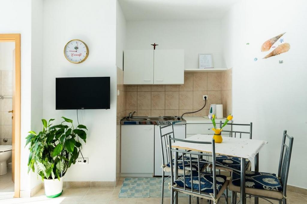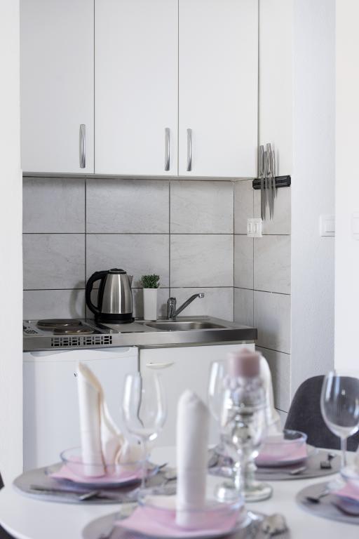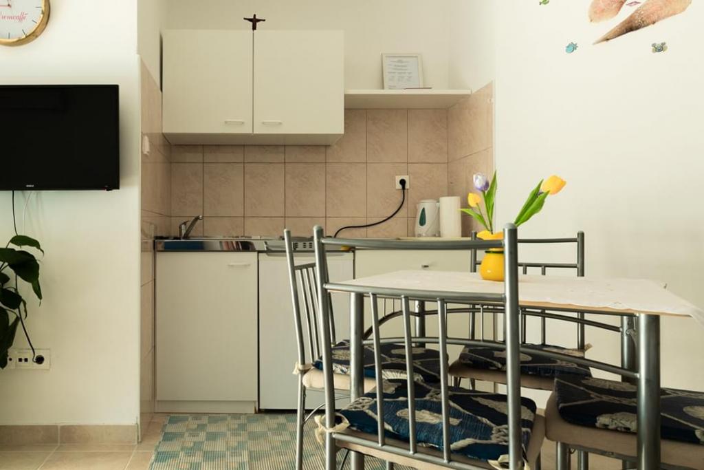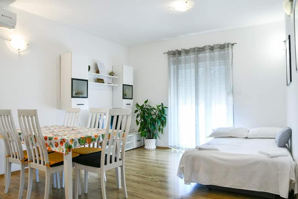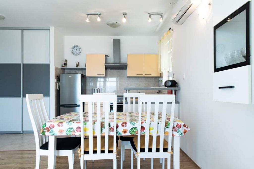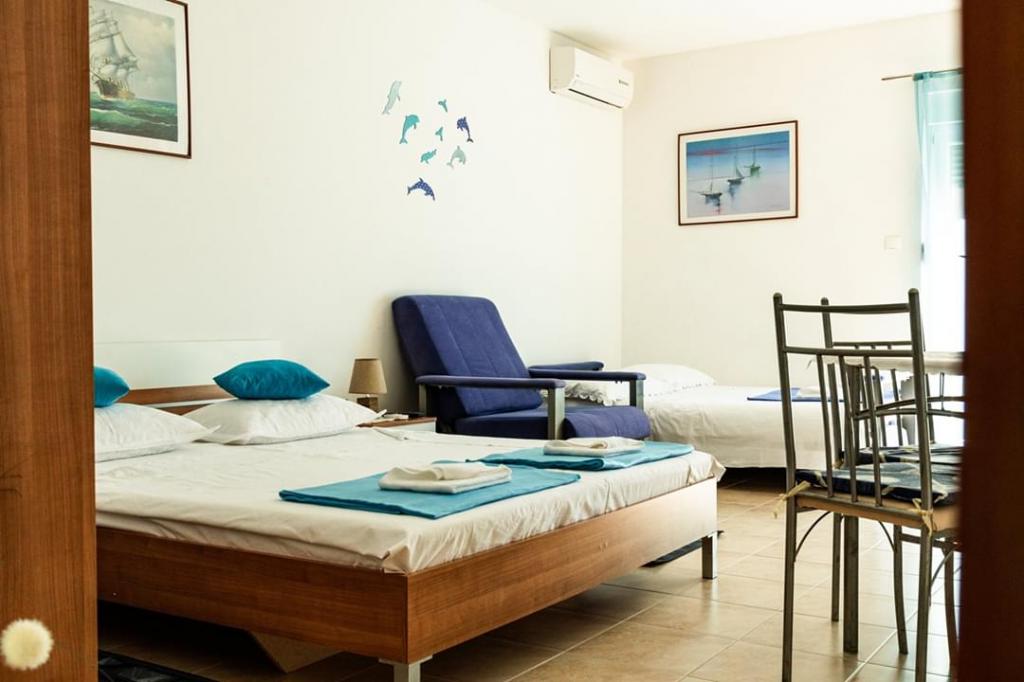 Apartamente complet renovate, cu aer condiționat și vedere la mare într-un loc turistic liniștit. Aproape de diverse facilități de servicii, magazine, baruri, restaurante. Pe plaja cu nisip, împreună cu marea limpede, sunt oferite diverse facilități sportive și de agrement. Oaspeții noștri au, de asemenea, reduceri la anumite restaurante, rafting, plimbări cu barca prin canionul râului Cetina, plimbări cu barca către insula Brac, jet-ski, rent-a-boat și plimbări cu banane și tuburi pentru cei mai tineri. Prețul include internet, SAT, parcare privată și utilizarea grătarului în aer liber.