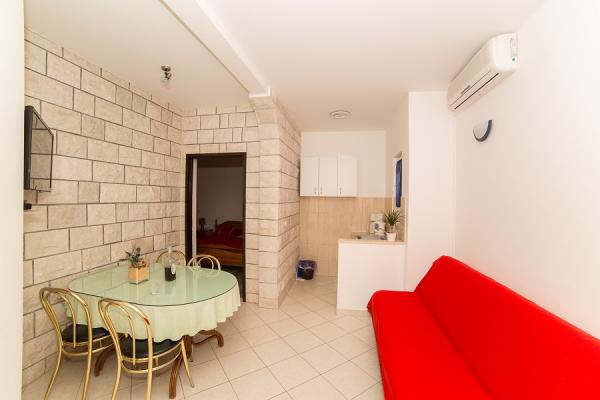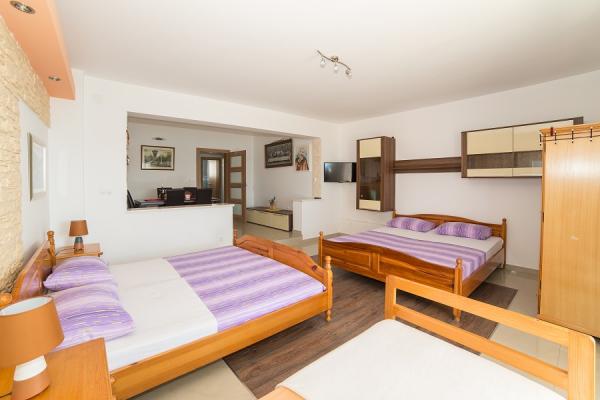 Apartamentele Nada sunt plasate chiar lângă frumoasa plajă de nisip, departe de drumuri și de zgomot. Pe plajă puteți închiria scutere, bărci cu pedale, plimbari cu barca cu motor, excursii la insula Brac ...... Intrarea în apartamentul rezervat în 14h și din aceeași cu 10 de ore (în cazul în care sosiți mai devreme, desigur, va avea la grupuri sanitare service, parcare ... toate lucrurile necesare în timp ce apartamentul este gata.) Rezervarile sunt valabile atunci când plătiți un depozit, care este de 30% din suma totală. Facilitatea este situat la 5 minute cu mașina de cenți Omis.