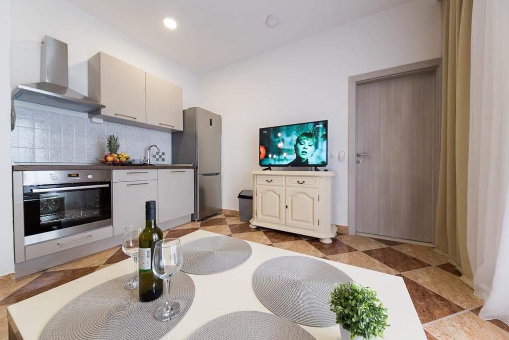 Apartamentele Kristal sunt situate în Duce. Complet renovat și spațios, acesta va oferi cazare confortabilă și odihnă. Acest apartament are un dormitor, o bucătărie utilată, un TV cu ecran plat, aer condiționat și o terasă spațioasă. Apartamentul include și 1 baie. Oaspeții au la dispoziție un grătar în interiorul casei, parcare privată și Wi-Fi gratuit. Apartamentul este situat la 100 m de plajă, unde există un restaurant și o cafenea. În centrul orașului Dugi Rat, la 500 m distanță, există: supermarketuri, clinică, farmacie, birou de schimb valutar, poștă și cafenele. Split este la 18 km de Apartments Kristal, iar Makarska se află la 34 km. Aeroportul Split este la 30 km de proprietate.