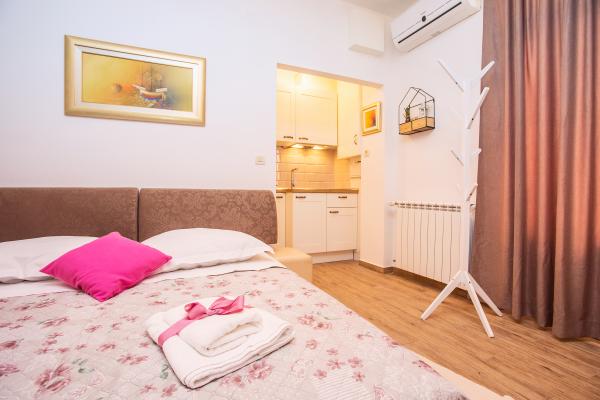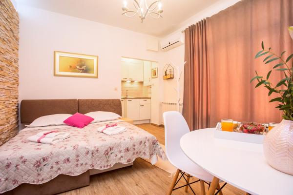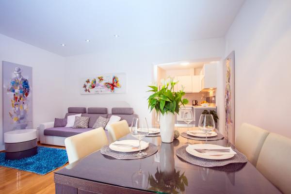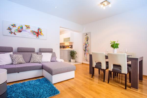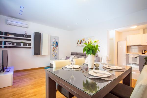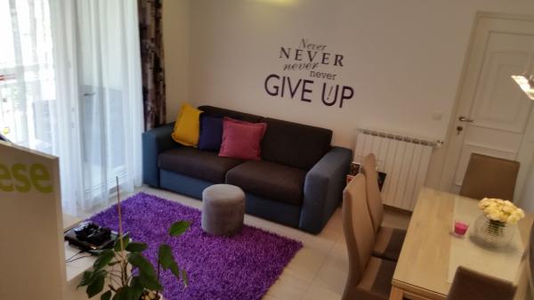 Apartament nou bine echipate în împrejurimile liniștite Split. Apartamentul este situat la 2 minute de mers pe jos de centrul orașului și la 5 minute de plajă și situat lângă facilitatea de sport. Apartamentul este situat într-o stradă liniștită, la primul etaj al unei case private. Include: aer condiționat; tv cu 900 de programe; internet Wi-Fi; mașină de spălat vase, mașină de spălat, și o bucătărie complet echipată. Apartamentul are un dormitor cu dublu krevettom, living cu o canapea extensibilă, 1 baie si un balcon cu masă și scaune, precum și un garaj pentru mașină. Doamćin este disponibil pentru orice ajutor Coyne și consiliere. Ne așteaptă cu nerăbdare fiecare sosire.