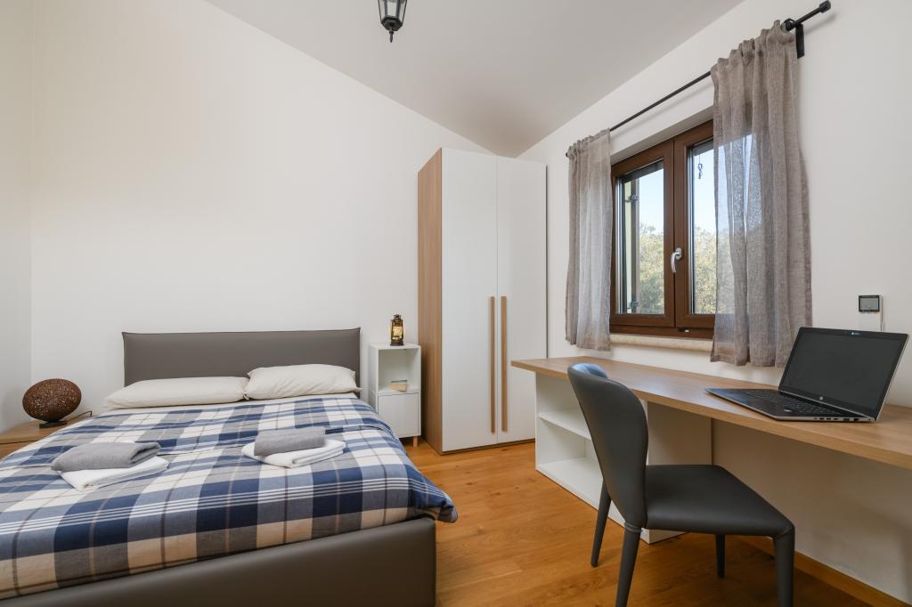 Apartament Ana Bruna, situat la primul etaj al unei case familiale decomandate nou construite, este situat intr-o zona linistita a Fazanei, inconjurata de plantatii de maslini si podgorii. Modern și complet echipat, oferă cazare confortabilă tuturor celor care doresc relaxare și distracție. Partea exterioară a curții este amenajată pentru relaxare și socializare, iar există două locuri de parcare. Clădirea în sine se află la 10-15 minute de mers pe jos până la plajă sau la malul apei Fažana. Fažana este situată în partea de sud-vest a Istriei și este înconjurată de numeroase plaje amenajate și naturale. În imediata apropiere a orașului Fažana se află Parcul Național Insulele Brijuni, care vă va încânta cu natura și vestigiile sale culturale și istorice. Programele și evenimentele bogate de animație de vară în Fažana, precum și posibilitatea de a alege diverse recreeri, vor asigura o vară de neuitat pentru gustul tuturor.