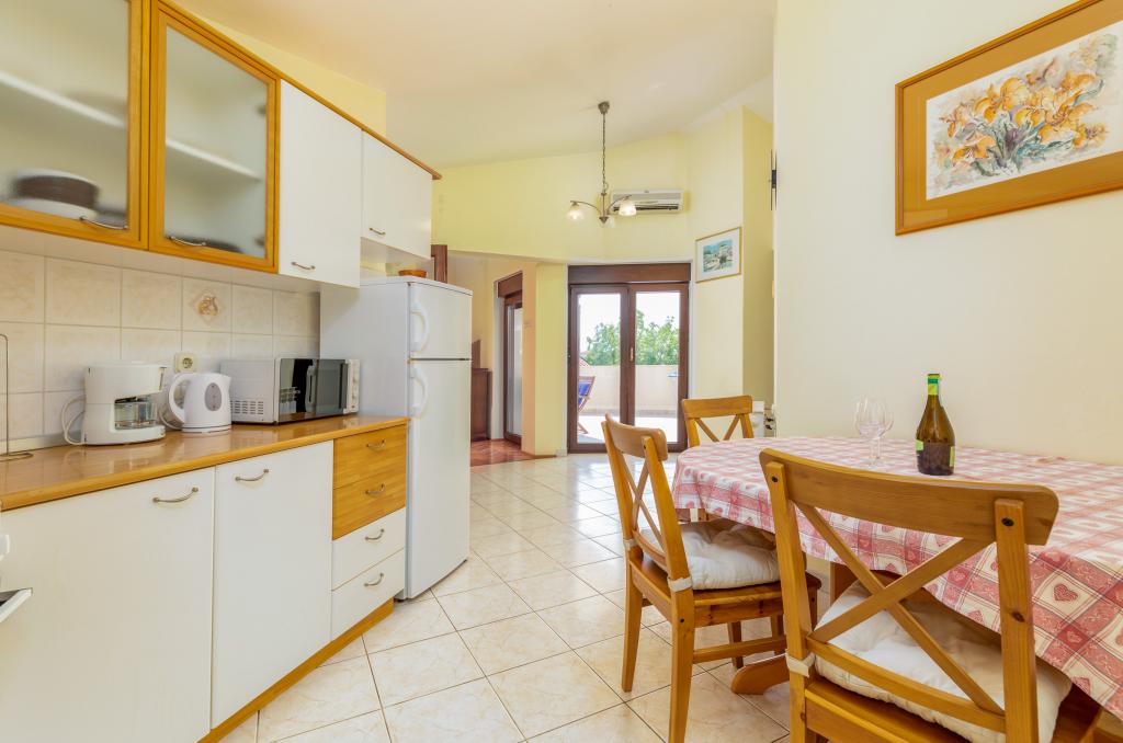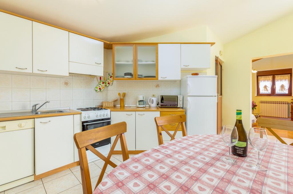 apartament placut si spatios, terasa mare, bine echipata (masina de spalat vase, cuptor cu microunde, aer condiționat, televizor, internet WiFi). Ai nevoie de o mașină, o locație convenabilă pentru a vizita Pula, Fažana (Brijuni) și coasta de est. Mi-ar recomanda prietenilor.