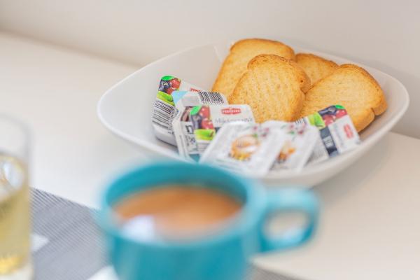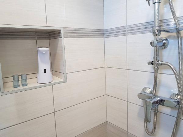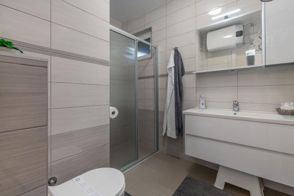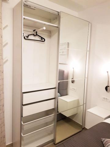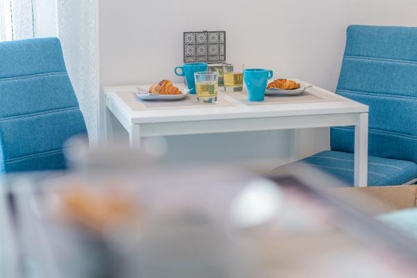 Taxa de rezidenta este inclusa in pret.The kitchen is fully equipped with all accessories, dishwasher, 2-pane glass ceramic plate, freezer and fridge. Each apartment has a table and chairs for dining inside and on the terrace. We are very proud to offer beds of very large dimensions of 190x210 with extra quality mattresses and quality bedding, USB charging sockets are next to the bed. Lights have ability to change color and have bluetooth speaker for listening music from mobile phone. Great WI-FI and big screen Android TV with variety of programs from Internet or satelite TV and free Netflix service. Each apartment has a make-up table and chair, but it can be used as a work desk. The bathrooms are equipped with floor mats, towels, toilet paper, hair dryer and First aid box.
