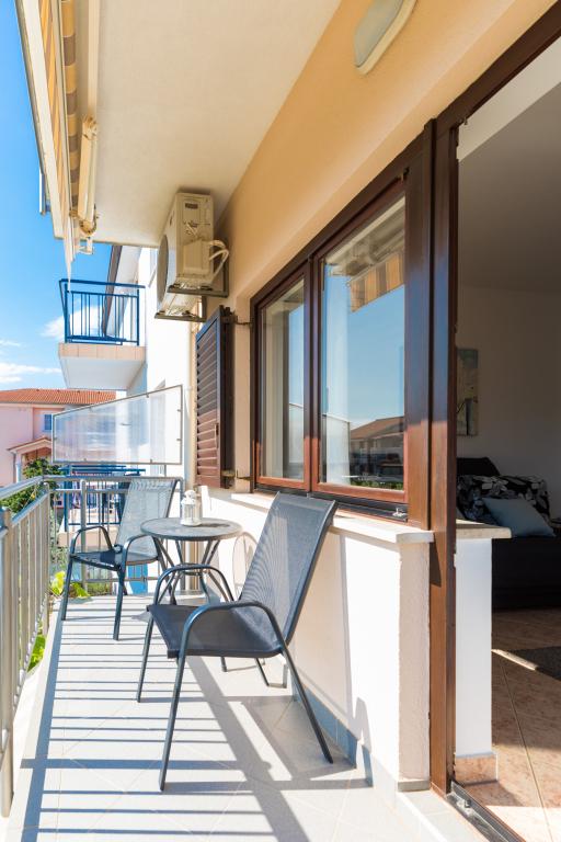 Apartamentul este la etajul 1 al unei case frumoase și bine păstrate. Proprietarii sunt foarte amabil și prietenos. Am fost invitați la o foarte mare de alimente cu proaspăt prins la grătar bas de mare. Toată casa și mai ales apartamentul nostru erau foarte curate și frumos decorate. Am avut o bucatarie confortabila, o baie mare și un balcon pe toata casa pentru partea de partea de sud-vest, cu spațiu suficient pentru uscarea prosoape de plajă și costume de baie. Plaja este de aproximativ 200, în centrul orașului 350 m. Mai bine nu ne-ar fi putut lovi. Sunt bine recomandat acest proprietar și apartamente.