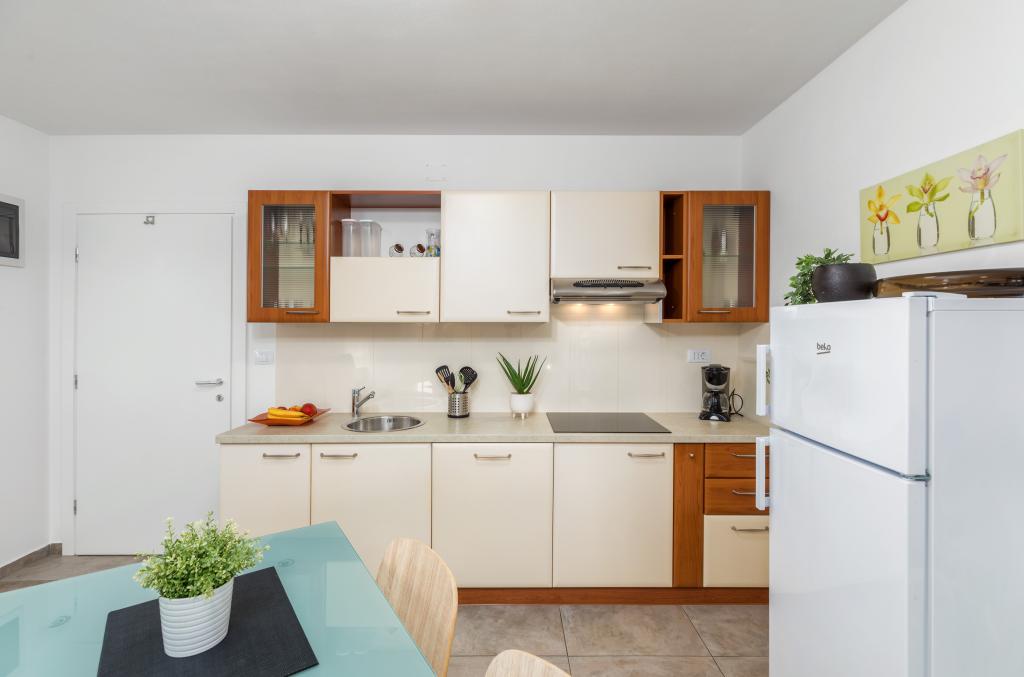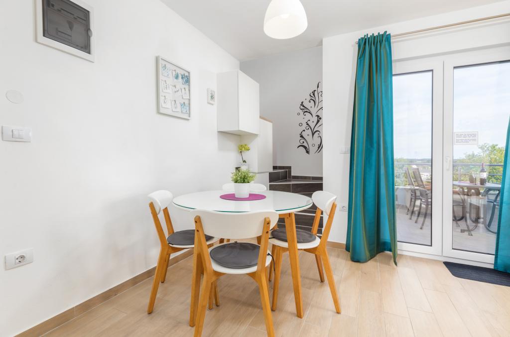 Apartamentul A4 de la ultimul etaj este pur și simplu grozav. Spațios, foarte curat, bucătărie complet utilată. Totul este gândit meticulos, plase la ferestrele din camere, terasă spațioasă, frigider mare cu congelator. Nu ne-a lipsit nimic și ne-am simțit ca acasă. Apartamentul A4 oferă intimitate absolută, deoarece este chiar sus, unde nu merge nimeni altcineva în afară de tine. Proprietara este foarte drăguță, ne-a copt o prăjitură, vinul și berea ne așteptau în frigider la sosire. Parcare convenabilă chiar în fața casei, mediu liniștit. Chiar dacă apartamentul este puțin mai departe de mare, acest lucru nu reduce deloc confortul vacanței. Dacă vom reveni în zona Pula, cu siguranță vom sta în acest apartament. Vă mulțumim pentru o vacanță minunată.