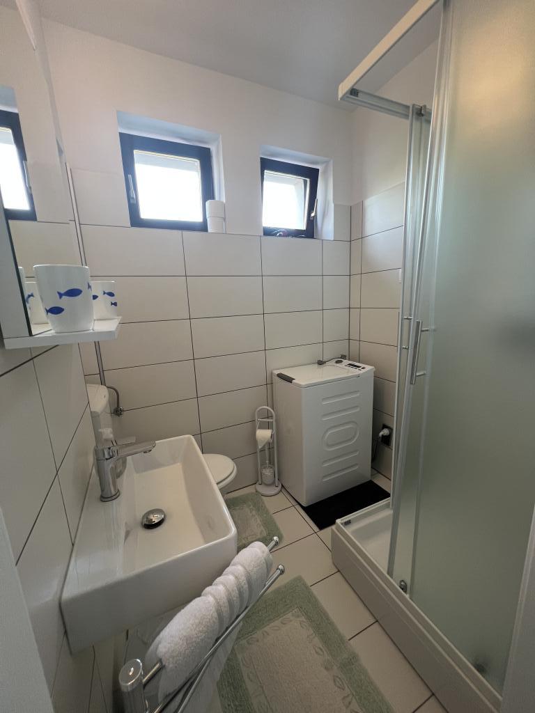 Un apartament excepțional pentru un cuplu sau o familie cu un copil mic. Dimensiune ideală, mobilat cu grijă și gust, cu tot ce ai putea avea nevoie. Terasa este suficient de mare pentru a bea o cafea simultan cu vedere la mare și un copil care se joacă, iar deoarece este orientată spre vest, este umbrită până la prânz, în timp ce mai târziu este salvată de copertină. Din câte putem observa, a fost recent renovată, complet ordonată și curată. Nu suferă de defectele croate clasice, cum ar fi seturi de ustensile de bucătărie nepotrivite (de fapt, este surprinzător de bună calitate) sau mobilier din RDG, deoarece „oaspeții nu au nevoie de nimic mai bun”. Pe scurt, în timpul șederii noastre de două săptămâni, nu ne-a lipsit niciodată nimic și nu am avut niciodată vreo plângere. Per total, apartamentul a îndeplinit perfect așteptările noastre. Proprietara este exact genul ideal de gazdă - caldă, prezentă atunci când ai nevoie de ea, dar discretă. Cât despre microlocație, marele magazin este literalmente după colț, iar Funtana este genială - nu este atât de aglomerată încât să intri într-o coloană de alți turiști, este conectată la o rețea de piste de biciclete și păduri și (pentru noi) cel mai important, chiar în mijlocul Istriei, așa că fiecare locație este la maximum o oră de mers cu mașina distanță. O recomandare absolută pentru oricine caută o vacanță mai activă, vizitarea obiectivelor turistice în Istria, familii cu copii mici și altele asemenea.