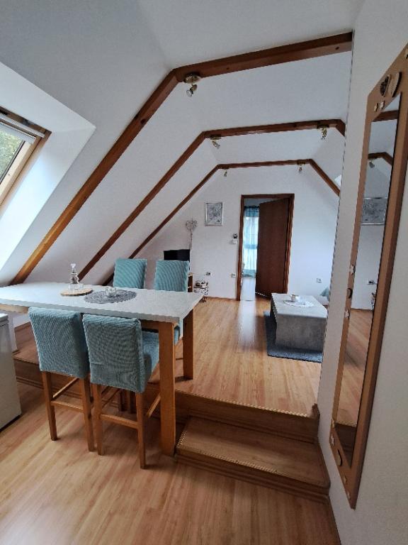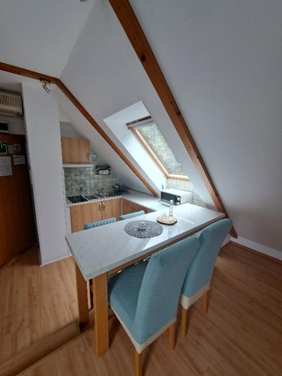 Apartamentele Erika sunt situate la 800 m de centrul orașului Fužine. Sunt situate într-o casă familială cu intrare separată pentru oaspeți. Avem două apartamente și sunt clasificate cu *** și **** stele și o cameră dublă cu baie separată clasificată cu *** stele. Cazarea noastră poartă eticheta de calitate a familiei Kvarner și sub mărcile Hike friendly, Bike friendly. Avem depozit pentru opt biciclete. Oaspeții apartamentului au la dispoziție grădina noastră, care este frumos amenajată și are multă verdeață. Avem un grătar de grădină, un loc de joacă pentru copii, care este format dintr-un tobogan, balansoar, leagăn și un teren de badminton. Oaspeții se pot bucura de grătar, umbră și aer curat de munte în liniște. Apartamentele au incalzire centrala, aer conditionat si conexiune Wi-Fi. În apropiere se află parcul nostru de adrenalină (parcul de distracție și paintball Vara), pe care îl puteți vizita în lunile de vară. Veniți și simțiți farmecul unui orășel din Goran și căldura căminului în apartamentele noastre, pe care mulți dintre dragii noștri oaspeți le-au simțit și experimentat și care le-au răscumpărat cu multe laude și recomandări. Bine ati venit!