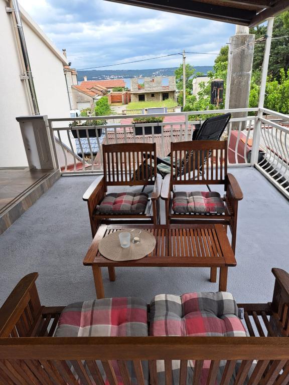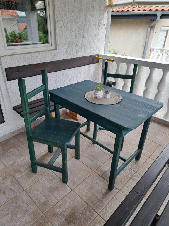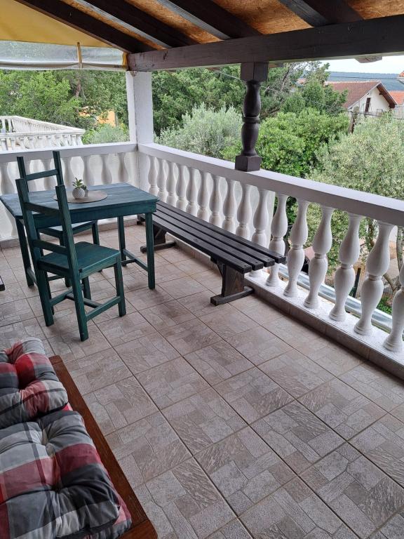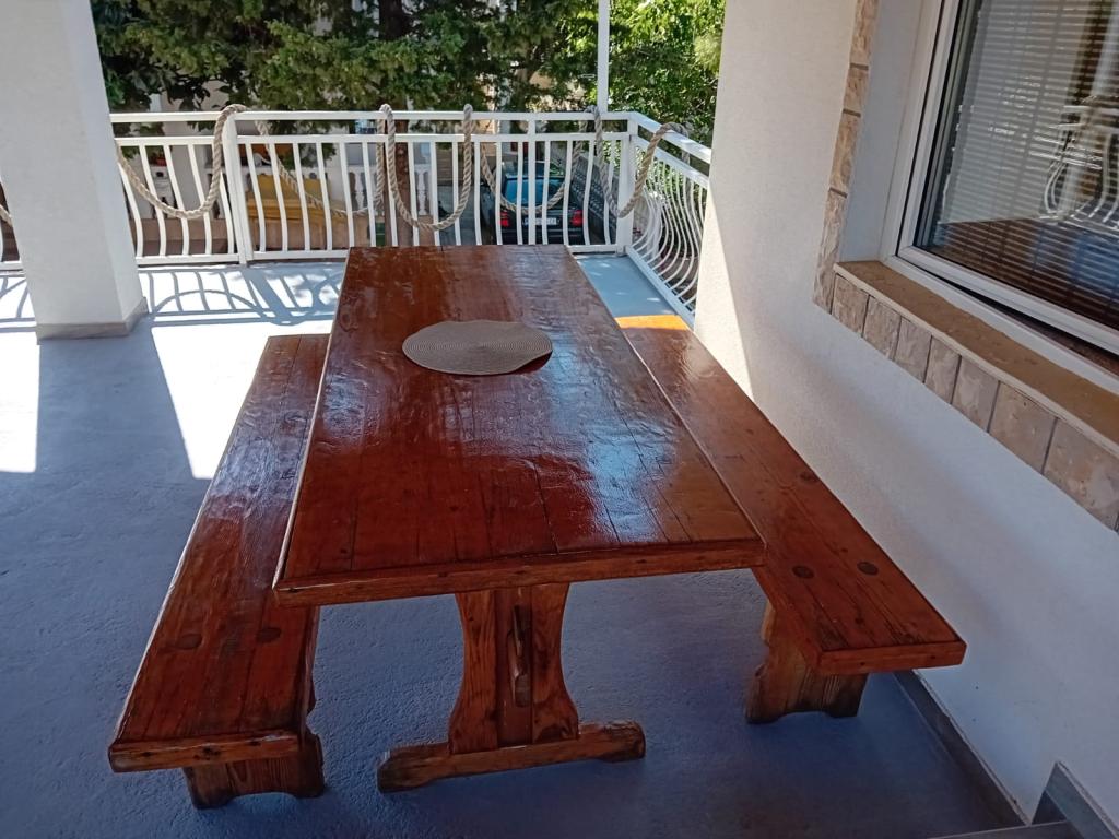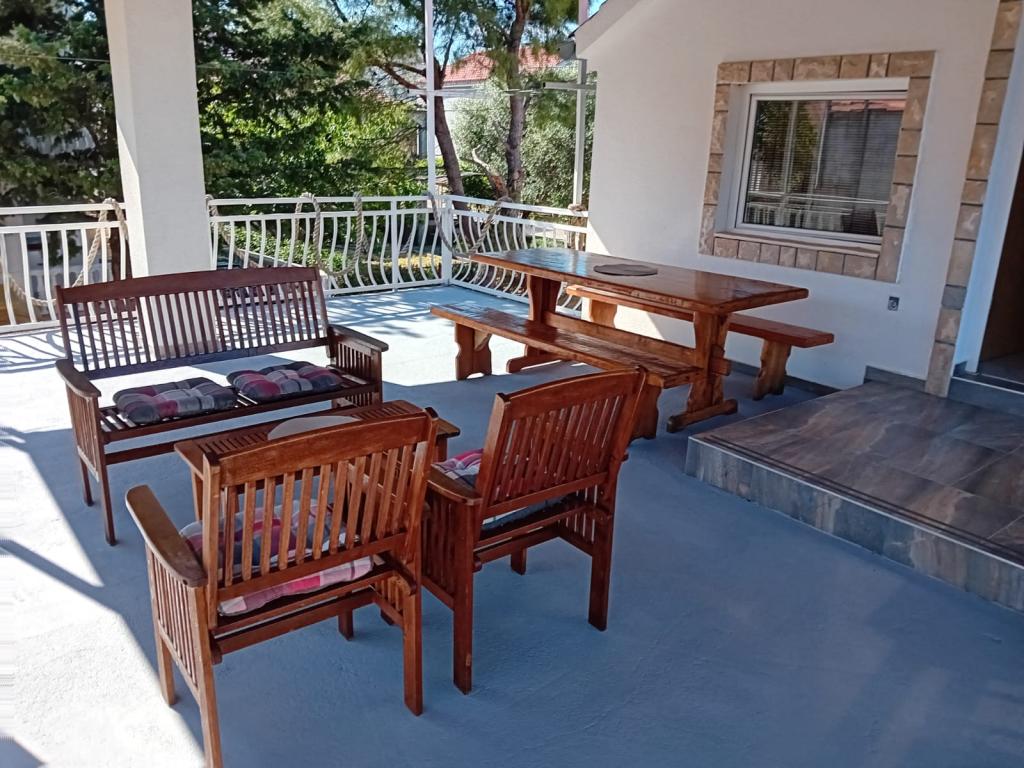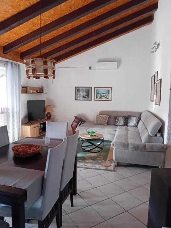 Apartamentele sunt situate la parter, care este prima stradă la mare. Acestea sunt dotate cu aparate (frigider, aragaz, cuptor. Cuptor cu microunde, vesela si ustensile), TV, parcare, nu sunt dotate cu aer condiționat. Fiecare are propria terasă cu vedere la peisajul rural. Posibilitatea de a folosi grătare curte. Apartamentele sunt potrivite pentru o mică familie sau de cuplu. Animalele de companie sunt binevenite pentru o mică taxă. Prosoape și foi sunt schimbate o dată pe săptămână. 50m de la mare, 200m de centrul orașului, iar primul magazin vă imediat peste drum. Deși situat în strada principală, terase ascunse și măslini, rodii.