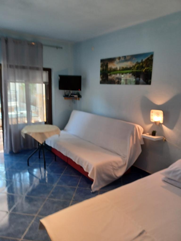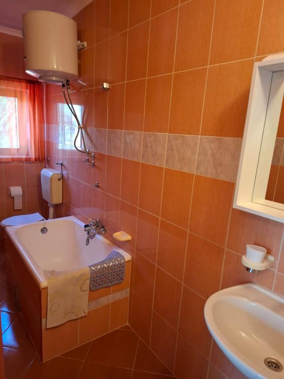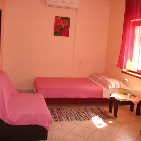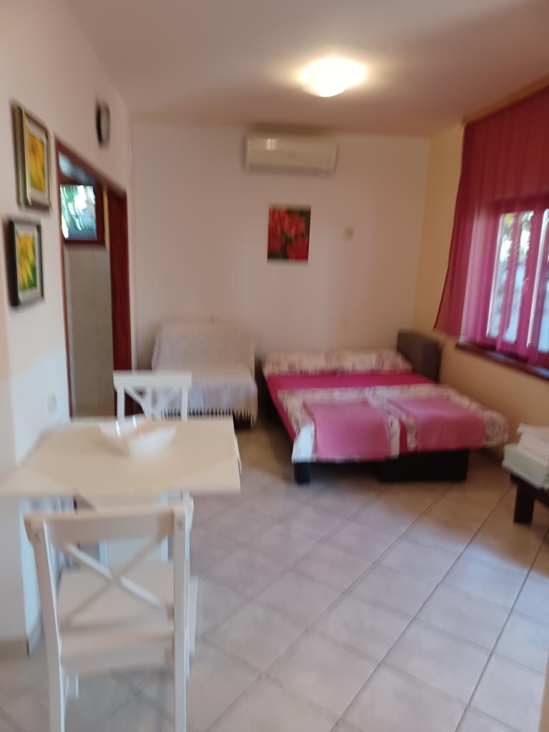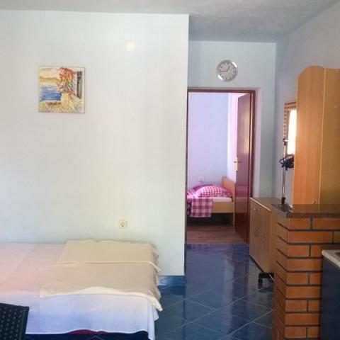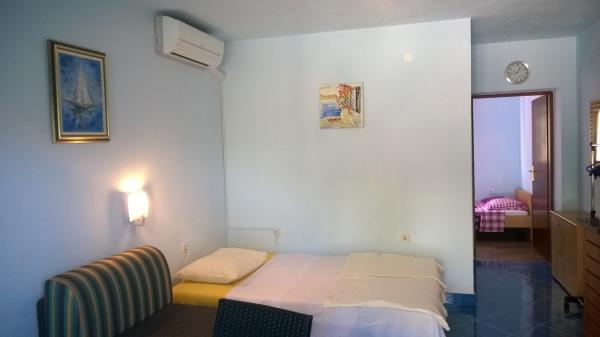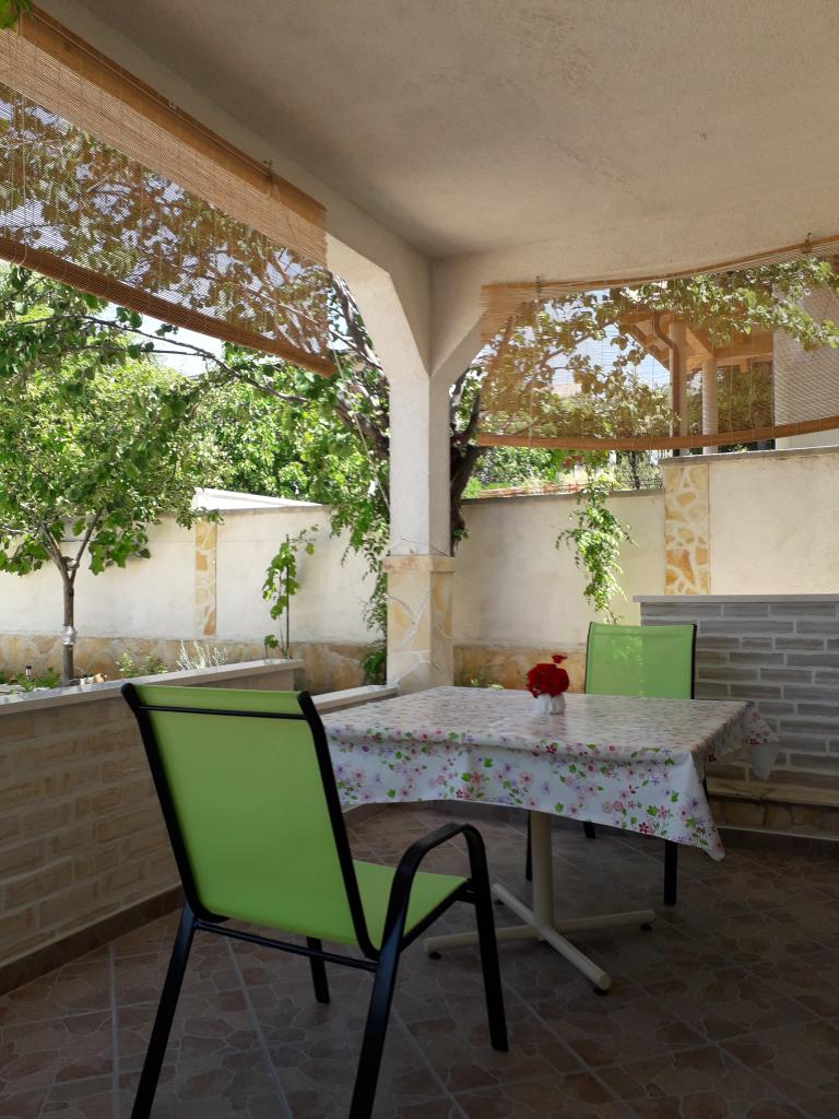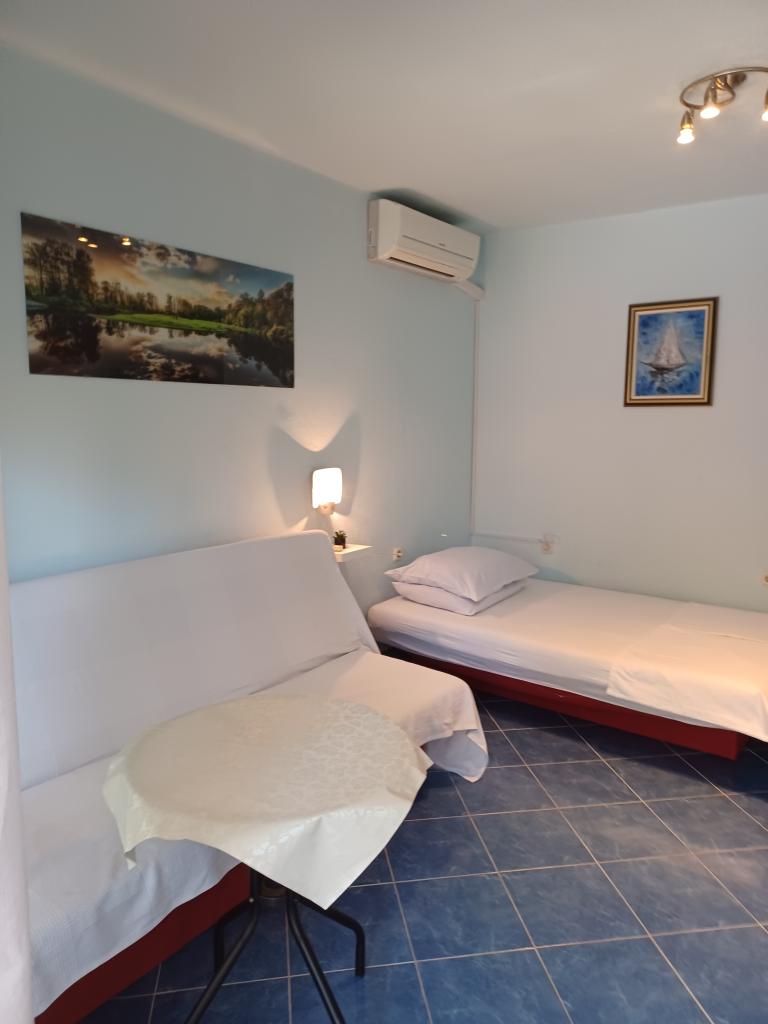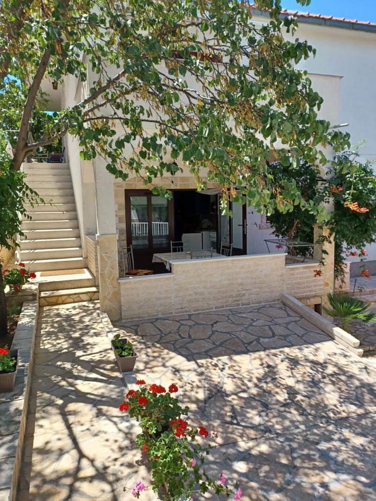 Casă recent renovată, două apartamente, curte amenajată, grădină, grădină plină de verdeață, loc de parcare în curte. Dimensiunea apartamentului este de 40 de metri pătrați. m. terasa are 20 de metri pătrați Fiecare apartament are o intrare separată și o terasă acoperită separat cu vedere la mare, Velebit, grădină și stradă, Apartament albastru: living, dormitor. bucătărie în sufragerie, baie cu toaletă. Living: pat dublu, plus pat suplimentar. Bucătărie, - complet utilată. Dormitor, - are două paturi individuale Dunja: living, - pat dublu, plus pat suplimentar; Bucătărie, - separată de un ecran complet echipat; Dormitor, - pat dublu pentru două persoane. Ambele apartamente au duș exterior separat și grătar comun, aer condiționat și internet nelimitat ca parte a prețului.