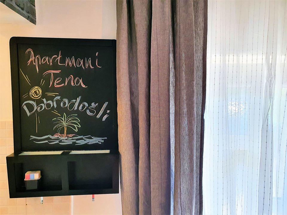 Apartamentele Tena sunt situate de-a lungul marginii promenadei, primul rând spre mare. Curtea amenajata duce direct la plaja, marea este la 10m distanta. Distanta pana la magazine sau restaurante 20m. Oaspeții facilității au la dispoziție o curte spațioasă, grătar și parcare. Fiecare unitate are mobilier de grădină adecvat, care asigură odihnă și distracție în cea mai fierbinte parte a zilei. Capacitatea blocului este formata din 2 apartamente, primul situat la parterul blocului, dimensiunea 22 m2, potrivit pentru maxim 2 persoane per apartament, iar cel de-al doilea la etaj potrivit pentru maxim 6 persoane. pe apartament. Fiecare apartament are paturi duble confortabile, o bucătărie și o canapea clasică cu trei locuri, care poate fi ușor transformată într-un pat suplimentar confortabil, dacă este necesar. Fiecare apartament este dotat cu aer conditionat, internet WI-FI, TV. Fiecare apartament are o baie cu duș. Crna Punta este situată în Golful Karin, la 5 minute de Karin, la 40 km de Zadar.