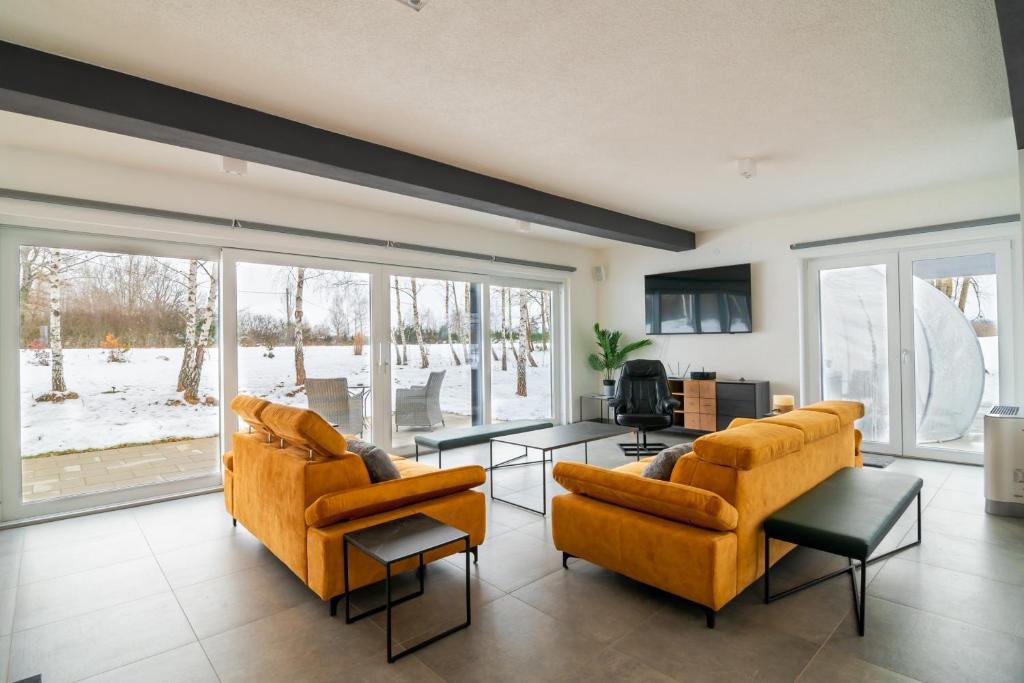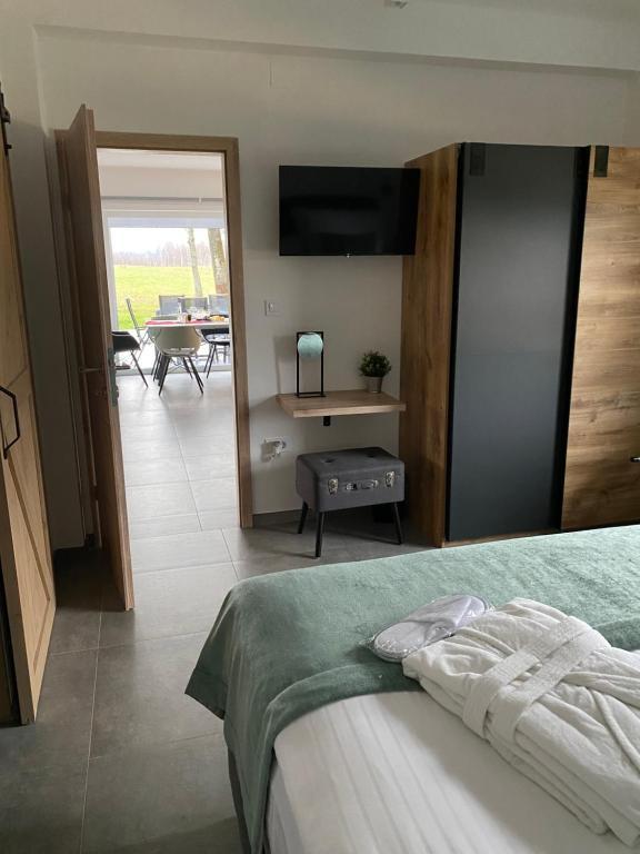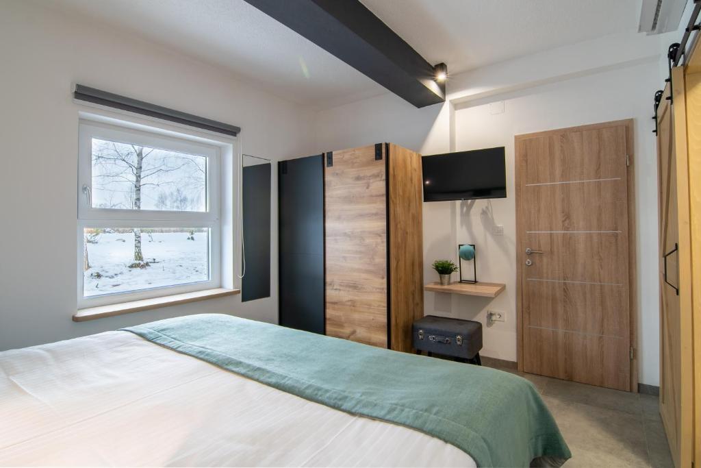 Casa de vacanță de lux Greenfields este situată într-o natură neatinsă, la 200 m de râul Lika, la 400 m de râul Otešica și la numai 4,5 km de centrul orașului Gospić. Terasa mare cu vedere la muntele Velebit are cadă cu hidromasaj pentru 5 persoane, mobilier complet de grădină, grătar și șemineu în aer liber. O terasă mică cu mobilier de grădină are vedere la grădină. Casa are două dormitoare, fiecare cu baie proprie, toaletă suplimentară, lenjerie de pat, prosoape, halate, papuci și produse cosmetice, trei televizoare cu ecran plat cu canale prin satelit, IPTV, Netflix, WiFi gratuit și un living spațios cu șemineu. Sufrageria si bucataria sunt complet utilate cu toate electrocasnicele necesare (masina de spalat vase, cuptor cu microunde, cuptor, aparate de cafea...). Casa are masina de spalat si uscator, precum si fier si masa de calcat.