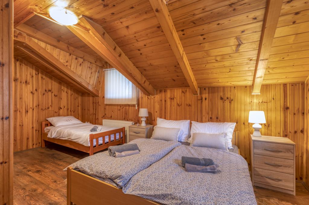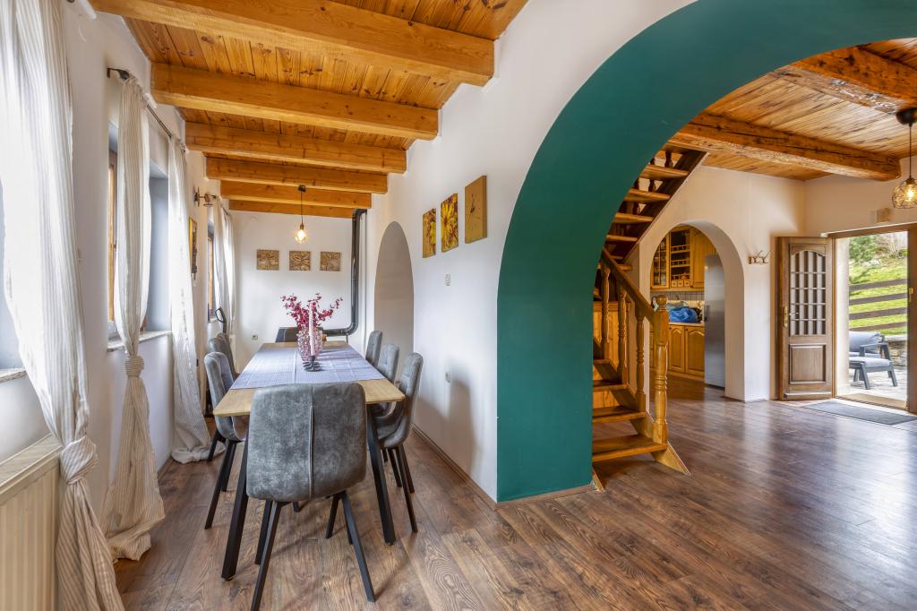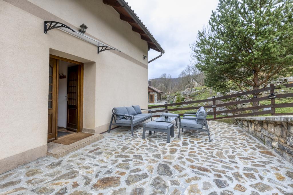 Casa de vacanta este situata in Parcul Natural Velebit, la doar 35 de minute de mare si la 1 ora de Parcul National Lacurile Plitvice. Proprietatea este izolata, cu vedere idilica spre padure si Velebit. Pe proprietate sunt 3 clădiri. Casa pe 3 etaje, garaj si casuta mica din lemn cu semineu mare si masa de lemn. In casa veti experimenta o atmosfera placuta cu multe elemente din lemn si mobilier confortabil. La parter se afla un living mare, bucatarie si baie. Scările frumoase din lemn vă vor duce la primul etaj unde sunt 4 camere foarte confortabile și o baie. La subsol se afla o sala de jocuri cu biliard, fotbal de masa si darts. Interiorul intregii case este amenajat cu grija, cu tot ce ai nevoie pentru un confort maxim si un sejur relaxat.