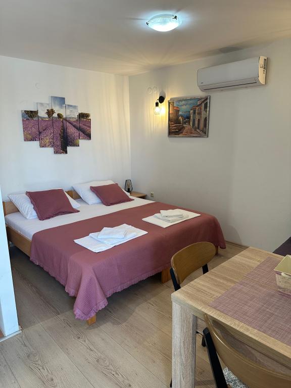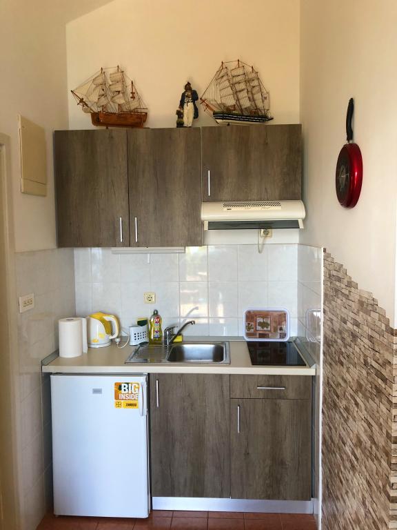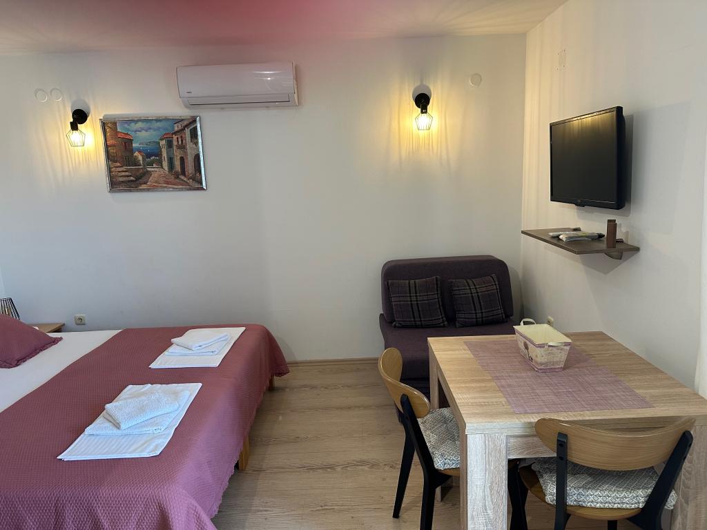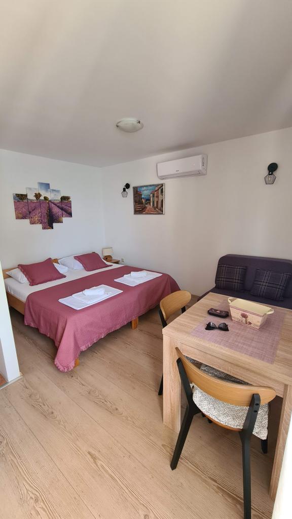 Casă de vacanță, primul rând la mare. Casa are doua garsoniere cu pat dublu si pat suplimentar. Numar maxim de persoane 4 adulti + 2 copii. Studioul superior are un balcon cu vedere frumoasă la mare. Studioul inferior are o terasă de 25 m2 cu o masă și o vedere frumoasă la mare. Ambele apartamente au propria mini bucătărie și baie cu toaletă. Internet gratuit disponibil in intreaga facilitate. Parcare liberă. Casa este închiriată în întregime, iar oaspetele are intimitate deplină. Proprietarul locuiește în apropiere.