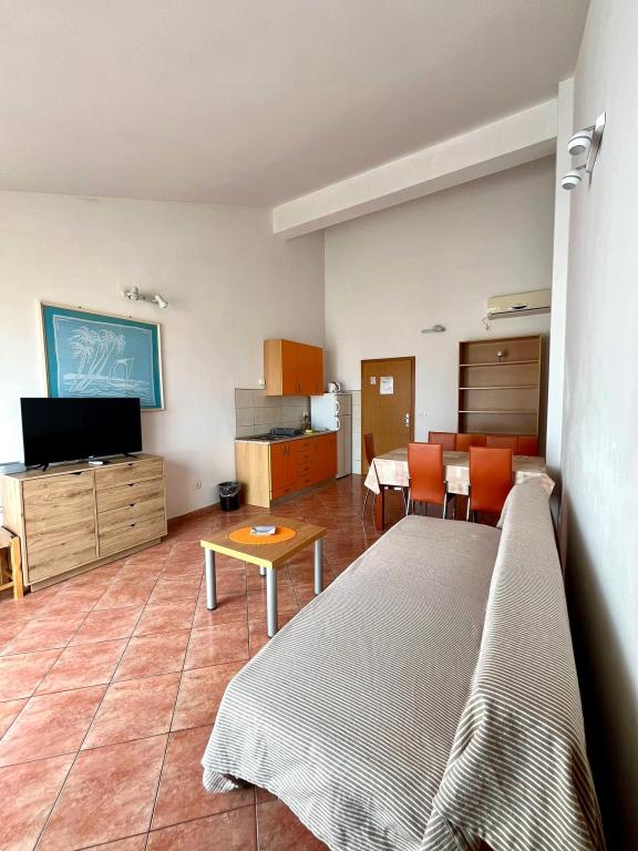 Imobilul este situat in centrul orasului Graz, intr-o locatie exceptionala in imediata apropiere a magazinelor, restaurantelor, plajei, posta si alte facilitati. Are o curte imensă, terase, parcare la umbră naturală și oferă parcare pentru echipamentele suplimentare pentru mare (barcă, bicicletă, motocicletă). Desi unitatea este situata in centrul orasului, la 2 minute de mers pe jos de plaja si restaurante, este extrem de linistita si linistita datorita pozitiei sale in raport cu alte facilitati. Apartamentele sunt foarte bine echipate si dotate cu aer conditionat, TV/sat, internet.