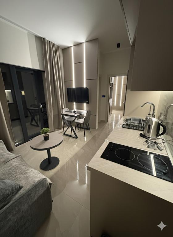 Bucurați-vă de luxul apartamentelor noastre complet renovate, decorate la standarde de 4 stele. Situate într-o zonă liniștită a orașului, acestea oferă o vacanță perfectă, fără zgomot, și se află la doar câteva minute de mers pe jos de cele mai frumoase plaje, restaurante și cafenele. Ce oferim: Facilități de top: Interioare moderne, aer condiționat, internet de mare viteză și TV cu o gamă largă de canale. • Curățenie și eleganță: Nivel ridicat de igienă și design atent selectat pentru confortul dumneavoastră maxim. • Parcare privată: În cadrul unității este asigurat un loc sigur pentru vehiculul dumneavoastră. • Ospitalitate: Suntem întotdeauna la dispoziția dumneavoastră pentru a vă recomanda cele mai bune restaurante, excursii și atracții locale. Note: Fumatul și animalele de companie nu sunt permise în unitate, păstrând astfel prospețimea și calitatea spațiului pentru toți oaspeții noștri. Experimentați vacanța perfectă în eleganță și liniște. Bine ați venit!