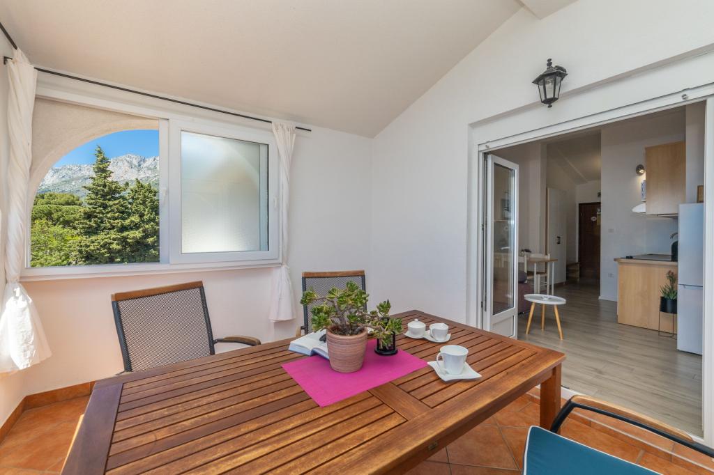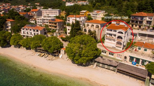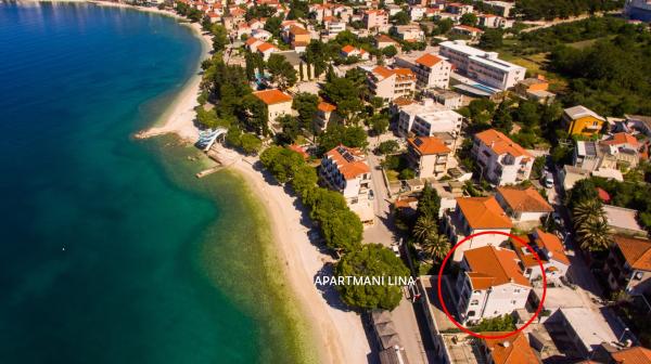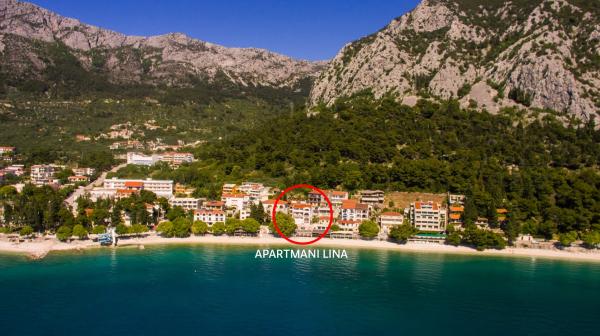 Lina Apartamentele sunt situate lângă plajă, în partea de est a Gradac. Apartamentele sunt situate la etajul al treilea și partea de sus a casei, unde se oferă o vedere frumoasă la mare și insule.