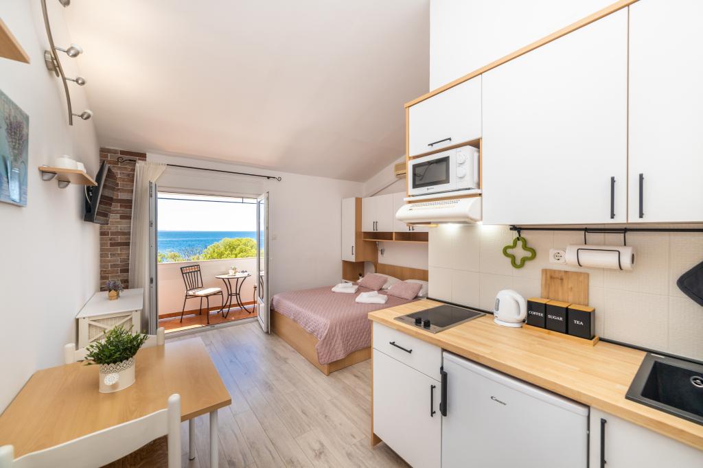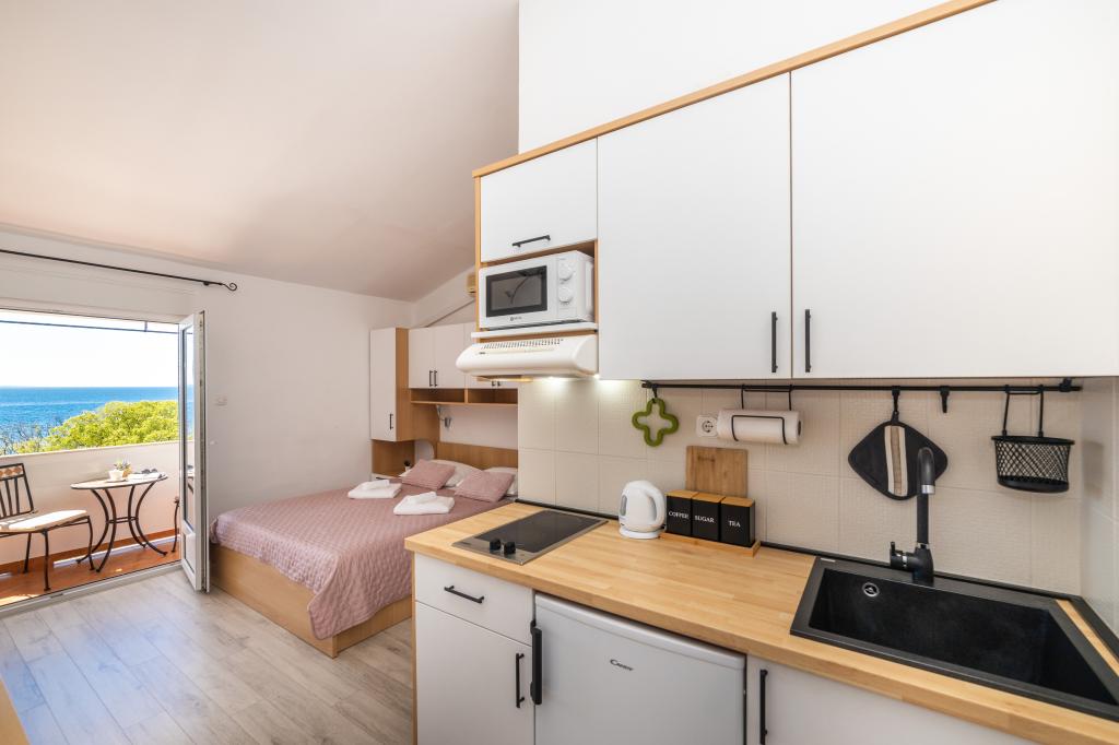 Suntem foarte mulțumiți de șederea noastră în garsonieră. Apartamentul este nou, frumos decorat și impecabil de curat. Locația este excelentă. Apartamentul are un balcon privat cu o vedere frumoasă la mare. Ni s-a oferit parcare gratuită. Proprietarul este foarte prietenos. Recomandările noastre pentru aceste apartamente.