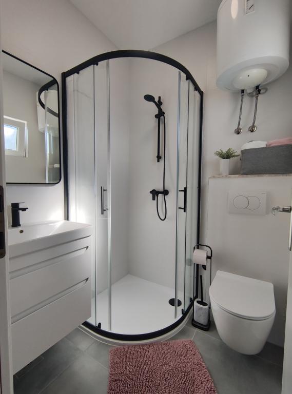 Loc absolut perfect pentru o vacanță relaxantă. Apartament în casă, situat în primul rând la mare. Terasa mare oferă vederi spectaculoase la mare și spațiu amplu pentru o familie de patru persoane. Apartament modern cu o mulțime de spații de depozitare, bucătărie echipată (inclusiv cuțite ceramice :-)), totul perfect curat. Fotografiile corespund realității, uneori realitatea este și mai bună :-) Serviciu perfect din partea proprietarilor, prosoape noi la fiecare trei zile, curățare săptămânală și schimb de lenjerie. Oameni drăguți, domnul Goran vorbește bine cehă. În împrejurimi veți găsi multe restaurante cu personal prietenos și mâncare excelentă, baruri, înghețată, magazin, poștă, bancă, standuri cu suveniruri ... Mulți chelneri și oameni de afaceri înțeleg cehă. Singurul lucru care mi-a lipsit în Gradac este locul de joacă, dar pentru asta, proprietarii de apartamente nu pot ...