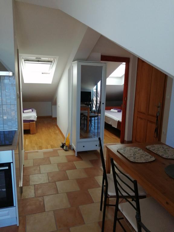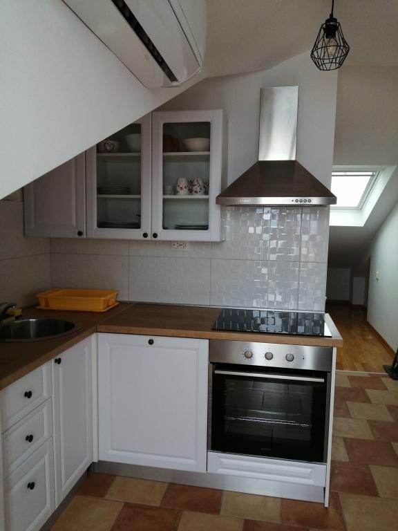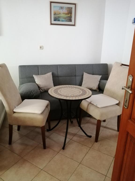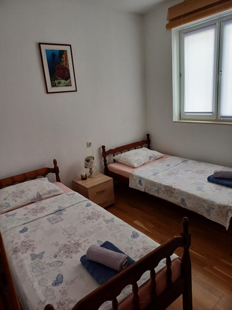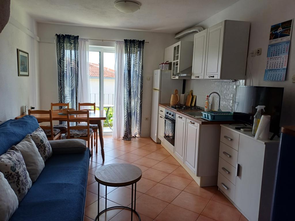 Apartament Lina este un apartament complet utilat intr-un loc linistit in apropierea centrului. Este la 3 minute de mers pe jos de plajă și la aceeași distanță până în centru. Este situat la primul etaj al unei case private și include un living conectat la bucătărie, un dormitor cu un pat dublu și un dormitor cu 2 paturi de o persoană și o baie. De asemenea, are un balcon cu vedere la mare. Este dotat cu toate electrocasnicele de bază (frigider, cuptor, aragaz) și include aer condiționat și un televizor și o canapea extensibilă în living. Pretul include un loc de parcare la 200 m de apartament, dar la sosire, in scopul descarcarii bagajelor, puteti conduce o masina la 30 m de apartament. Gazda se afla in acelasi loc si la sosire va intampina oaspetii si le va arata apartamentul si parcarea si va preda cheile.