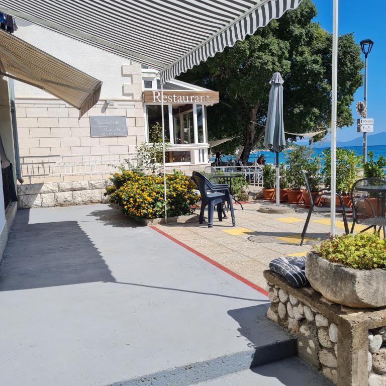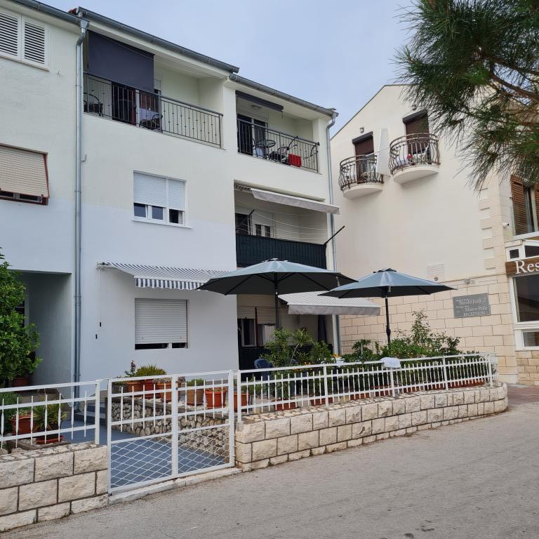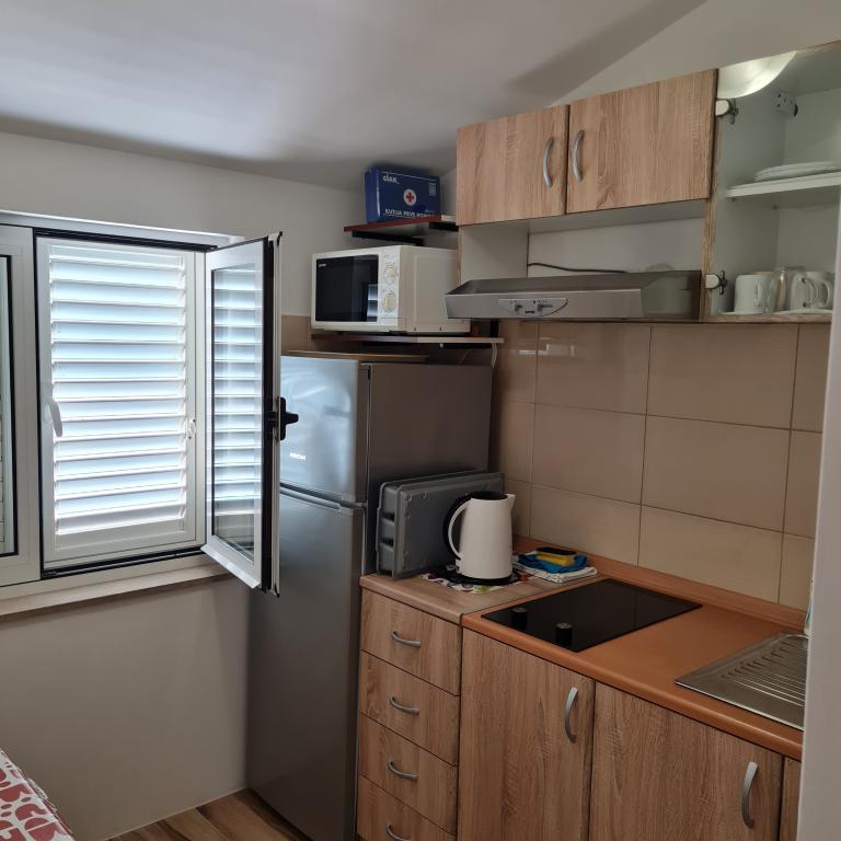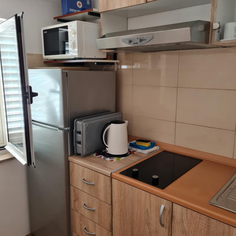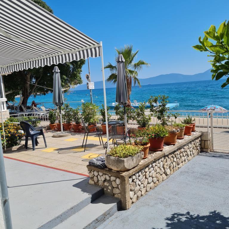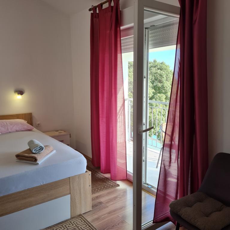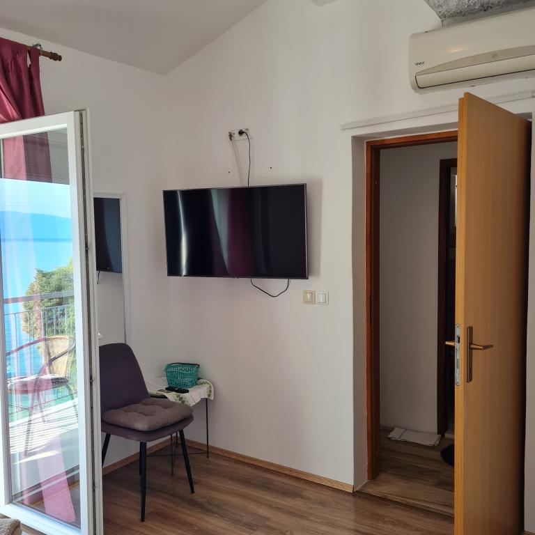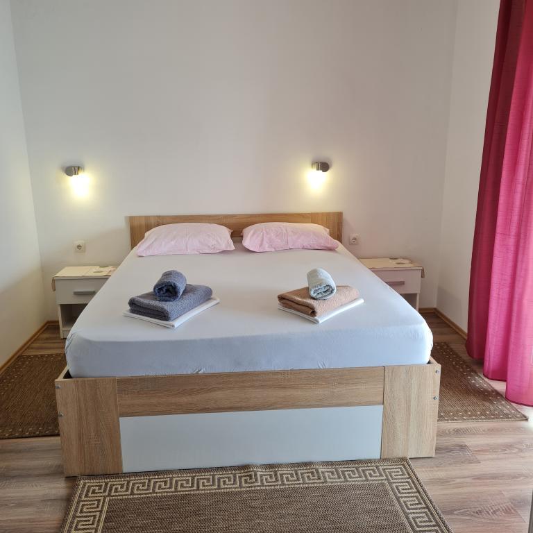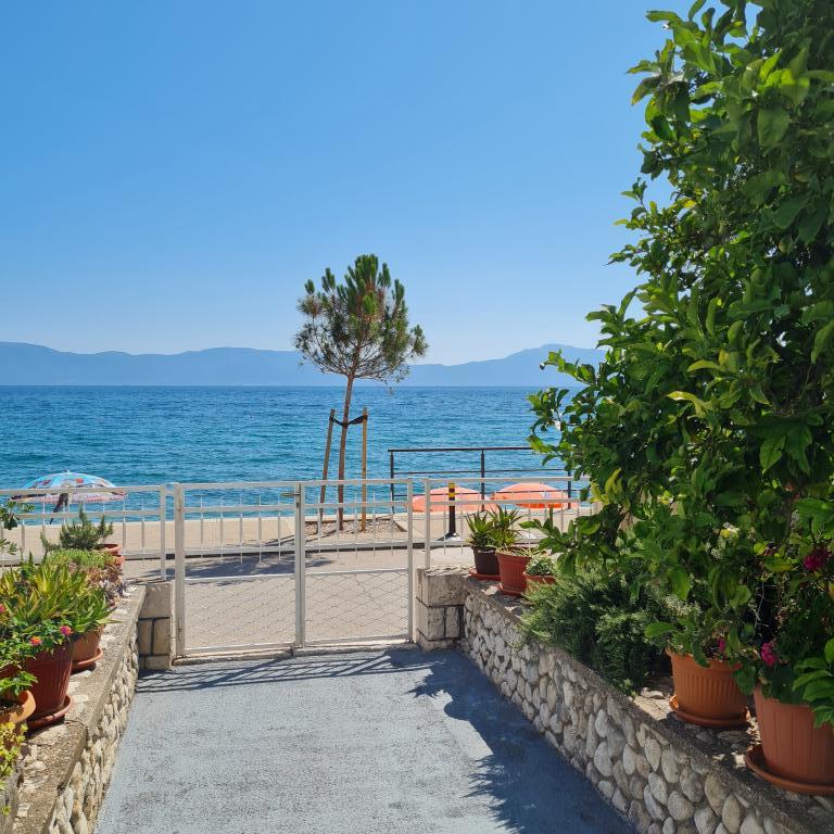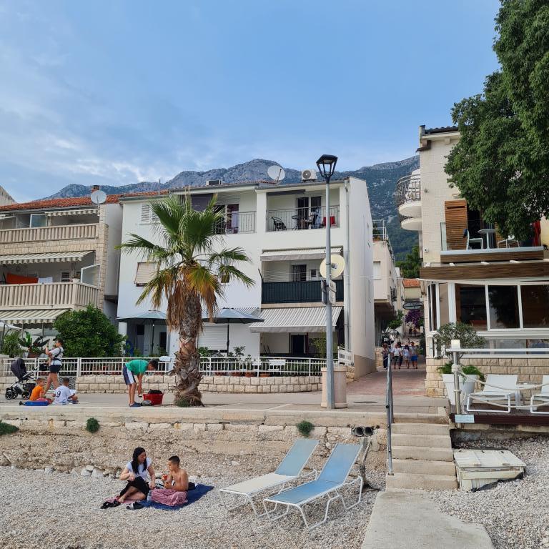 Apartamente spatioase si complet utilate cu vedere la mare, in centrul orasului Gradac, langa coasta (marea). In fata casei se afla o gradina cu un spatiu pentru pauzele de dupa-amiaza, ideala pentru ceai si cafea usoare sau pentru a citi o carte la alegere. Este oferită parcare pentru oaspeți. Pe lângă dotarea standard, apartamentul include aer condiționat, TV prin satelit, smart TV, Wi-Fi gratuit și dotări suplimentare precum cuptor cu microunde, ceainic și chiar uscător de păr. Apropierea de magazine, restaurante și bancomate oferă în plus oaspeților o vacanță mai plăcută și mai relaxată, fără nervozitate, totul pe o rază de maxim 100 de metri. (totul este „la îndemâna oaspetelui”) Facilitatea are un slogan: „Ca acasă”.