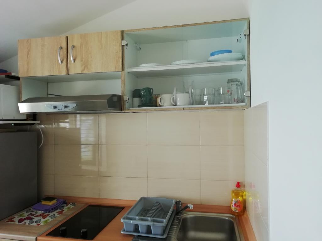 foarte ordonat, are tot ce ai nevoie, chiar și sticle returnabile dacă vrei să cumperi o băutură care necesită schimbarea ambalajelor goale cu cele pline. Balcon mare cu vedere la mare, la 5 metri de apartament. Gazda este prietenoasa, atenta la detalii, discreta dar mereu disponibila oaspetilor. Aici vei avea intimitate deplină și confort maxim. O recomandare pentru uleiul de măsline domestic care poate fi comparată cu cea premiată. PS, si sotul meu este multumit per total un 10
