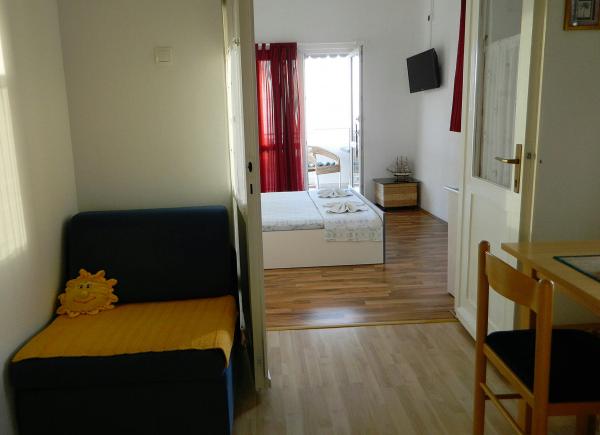 Unități de cazareAerul condiționat este inclus în preț. Prețurile se referă la două persoane, iar pentru a treia persoană se plătește un preț suplimentar. Prețurile se referă la minim trei nopți, iar pentru una și două nopți prețul este majorat cu 20%. Serviciile de spălătorie pot fi folosite o dată la 7 zile și costă 7 EUR per spălare. După efectuarea rezervării, oaspetele plătește un avans în valoare de 20%. Restul se plătește la sosire. Ora de plecare este la 10:00. Oaspeții pot intra în apartament la ora 13:00.
