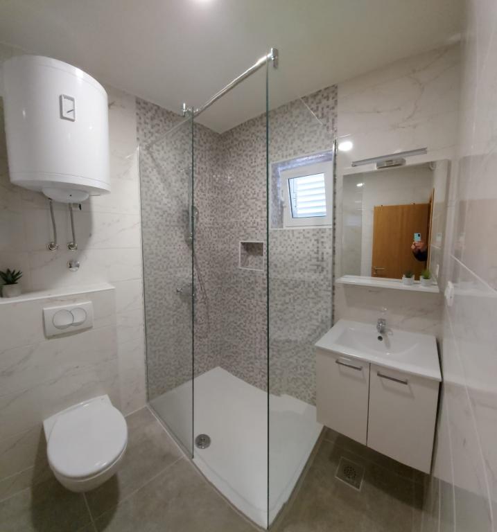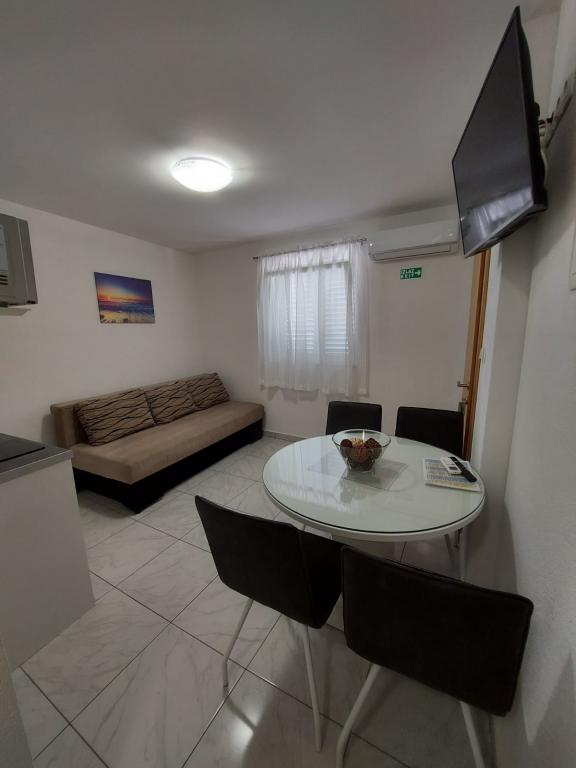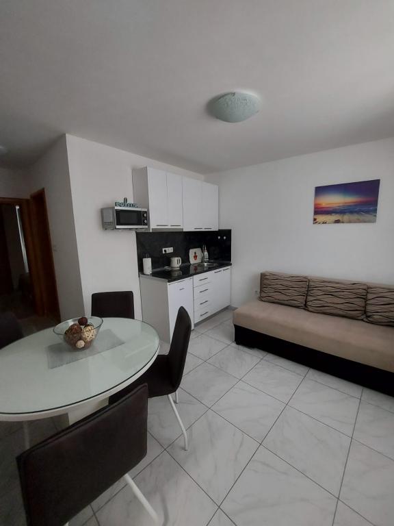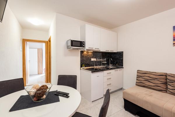 Am stat în apartamentul 4+2 și am fost încântați. Totul este impecabil de curat, ordonat și nou. Acest apartament este spațios, cu o baie mare și frumoasă și vedere la mare. Gazdele sunt cu adevărat minunate și deosebit de amabile. Recomandăm cu căldură această cazare și, de asemenea, lichiorul lor de cireșe de casă. Plaje frumoase sunt la doar câteva minute de mers pe jos, de ambele părți. De asemenea, practic după colț se află baruri, restaurante, brutării etc... Vă mulțumim pentru tot și pe data viitoare!